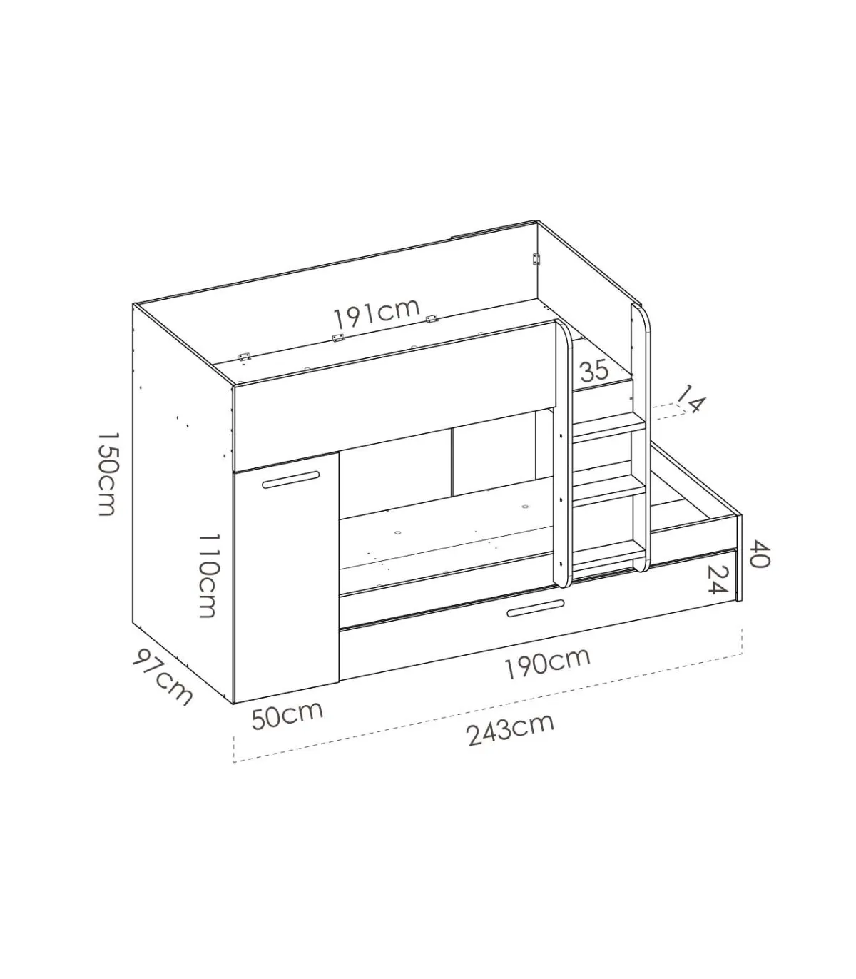 Conjunto de cama tren Orcera en blanco-grafito 150 cm(alto)243 cm(ancho)111 cm(largo)