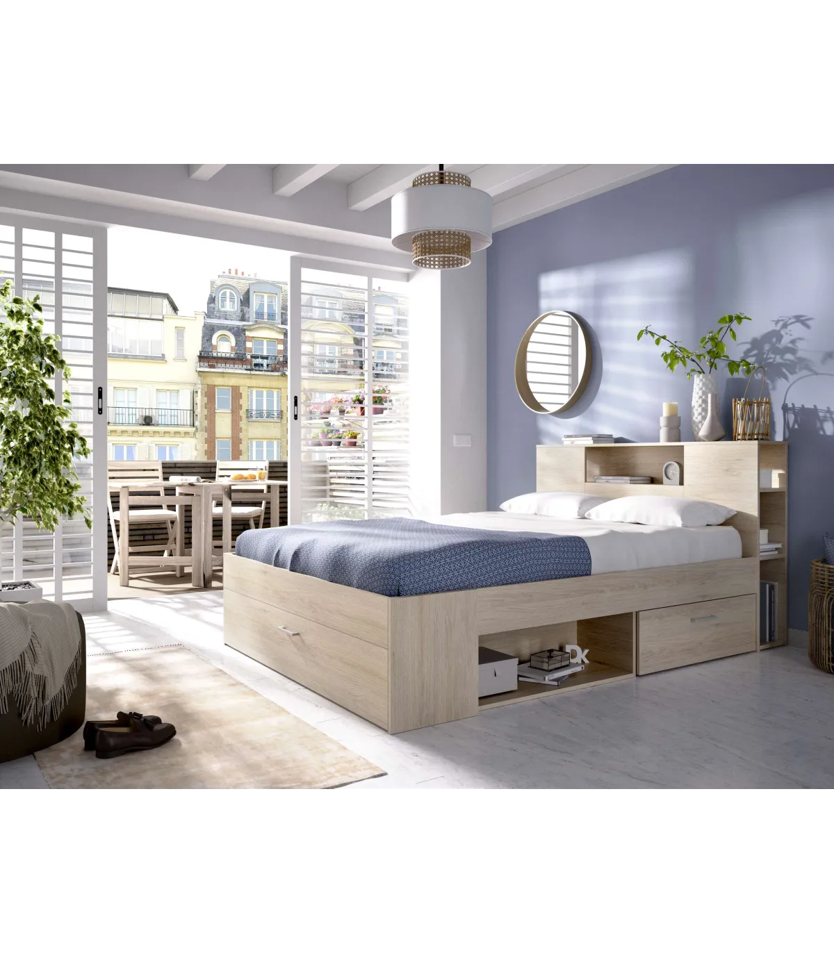 Cama compacta matrimonio Pozo Alcón en natural, 95cm(alto) 147cm(ancho) 219cm(largo)