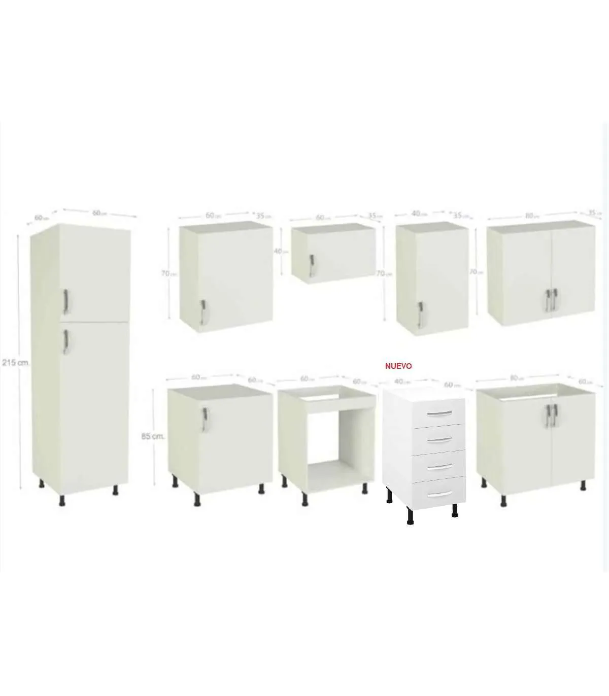 Cocina completa de 3 metros en color gris parís con un bonito diseño y a un precio increíble. incluye zócalo y encimera. Ambos irían siempre en blanco mate.
