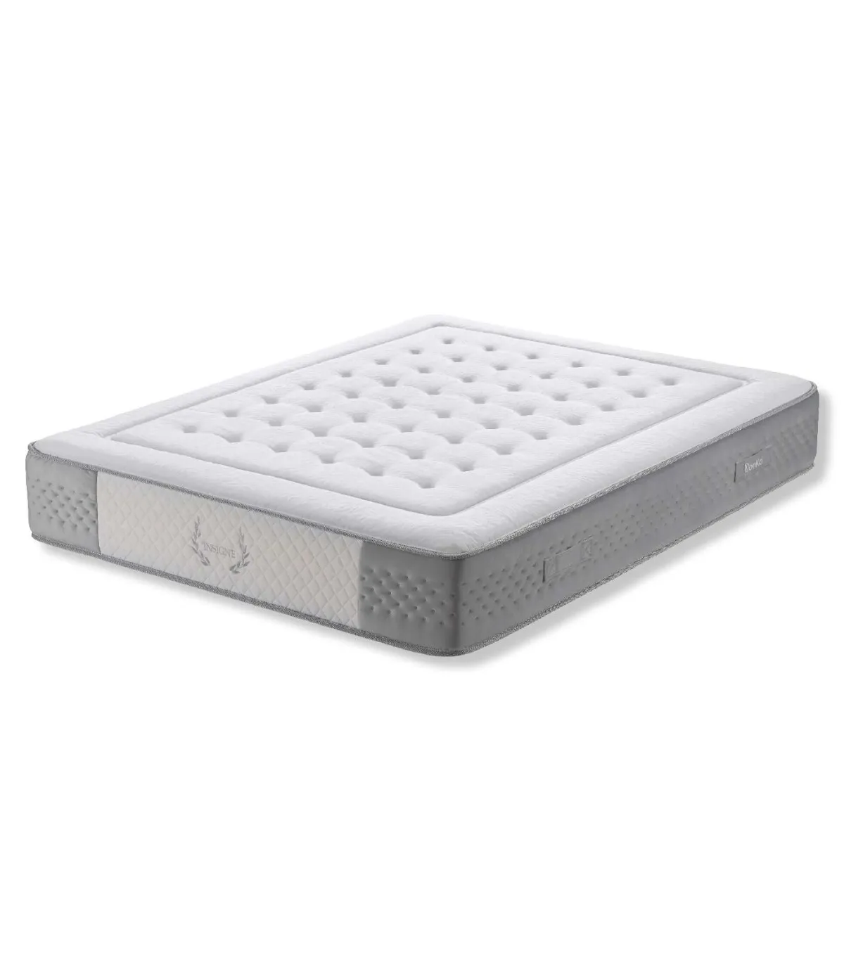 Colchón de muelles ensacados con BOX, es un refuerzo perimetral en todo el contorno del colchón y fieltro ondulado en ambas caras del muelle aportando una mayor estabilidad y firmeza al dormir. Sistema tapa a tapa en tejido strech blanco suave en ambas caras con acolchado Viscoelástico alta densidad más etter súper-soft y fibras thermo estas ayudan a la circulación del aire. Este acolchado se adapta al contorno del cuerpo en función del peso volviendo siempre a su postura natural de forma lenta y suave.