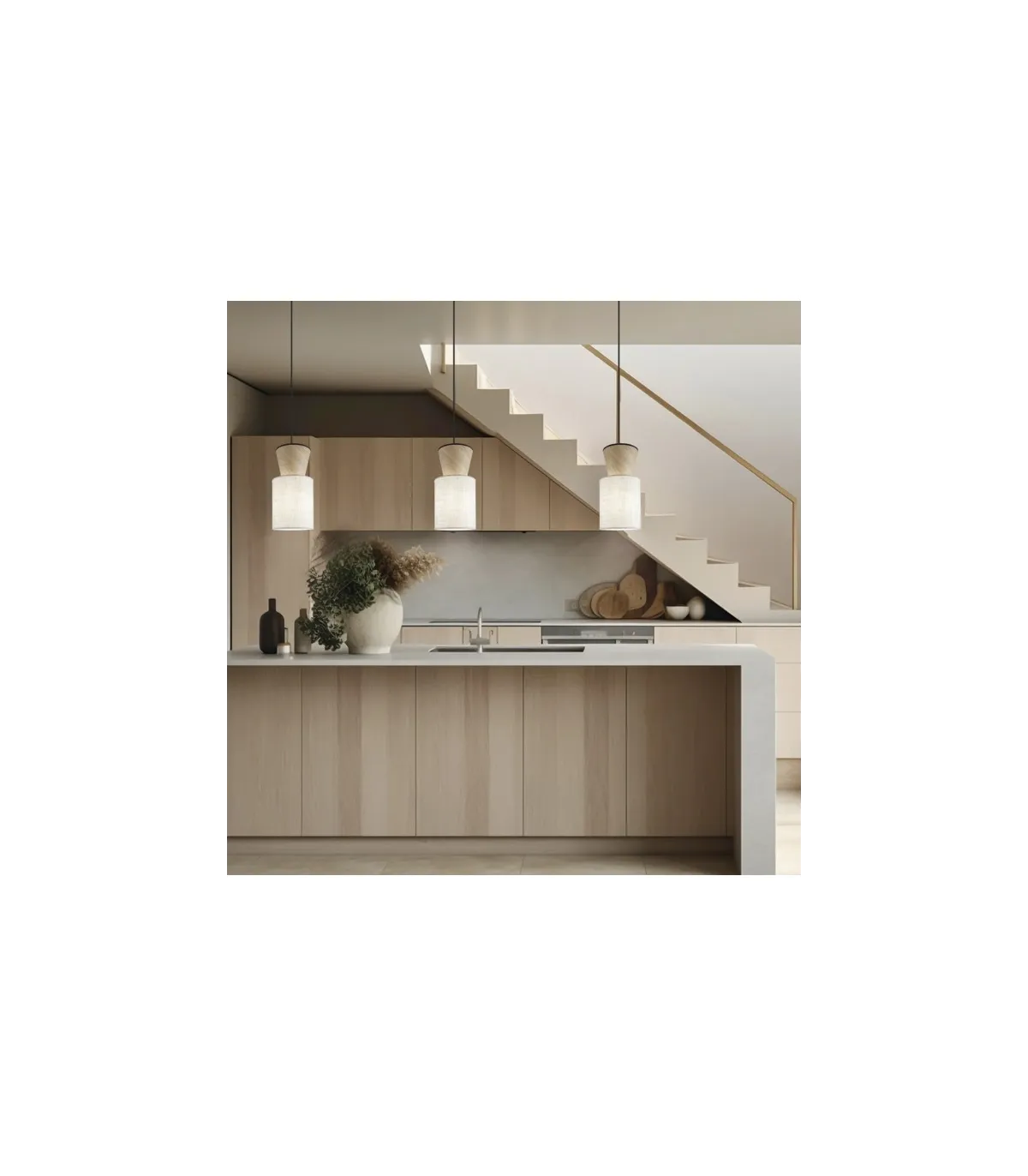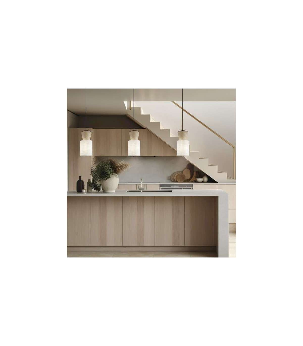 Ilumina tu espacio con estilo moderno · Diseño elegante en acabado beige/madera.