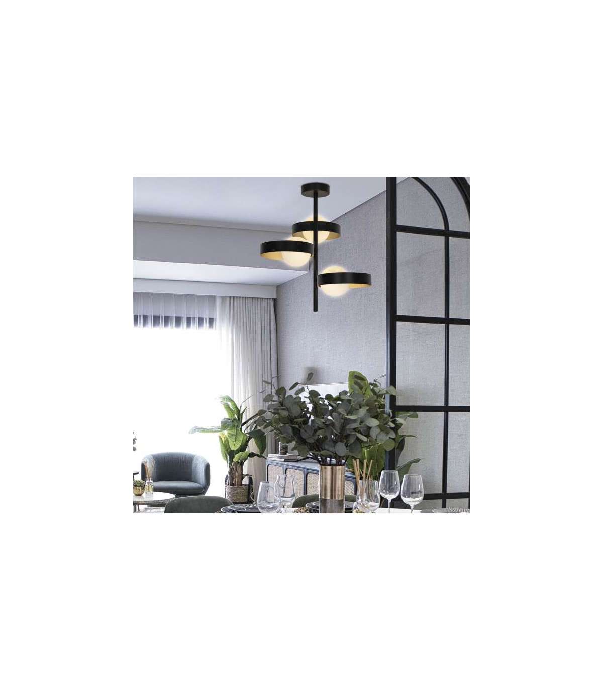 Ilumina tu espacio con estilo moderno · Diseño elegante en acabado negro.