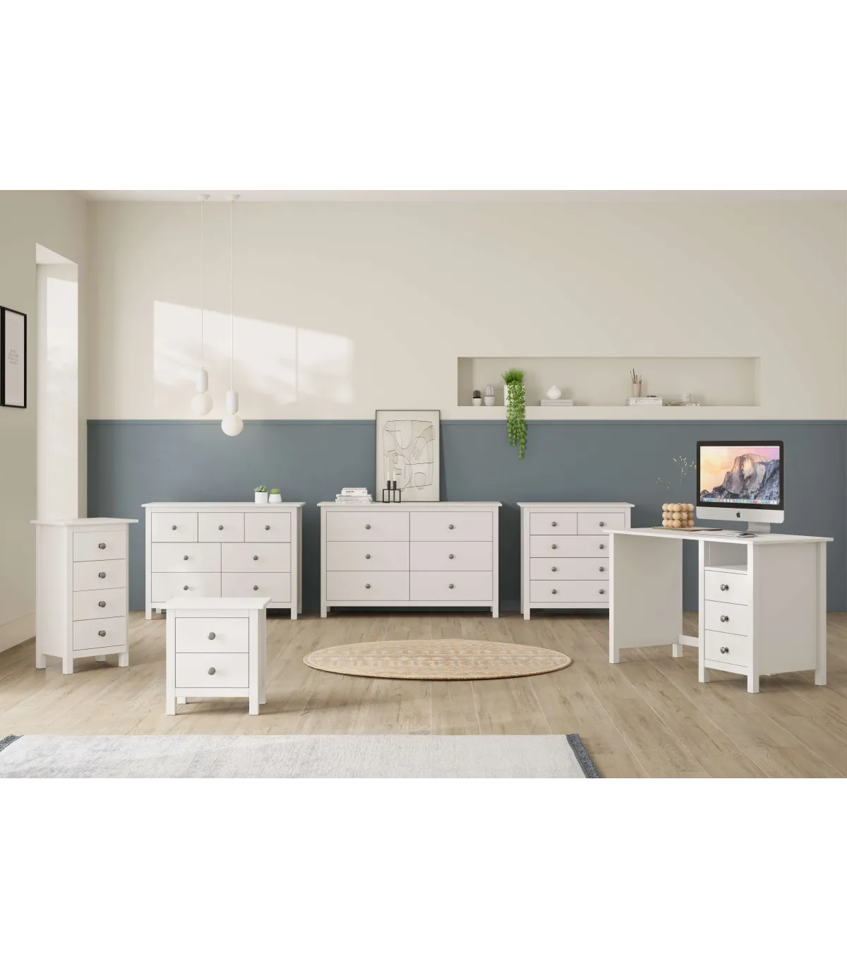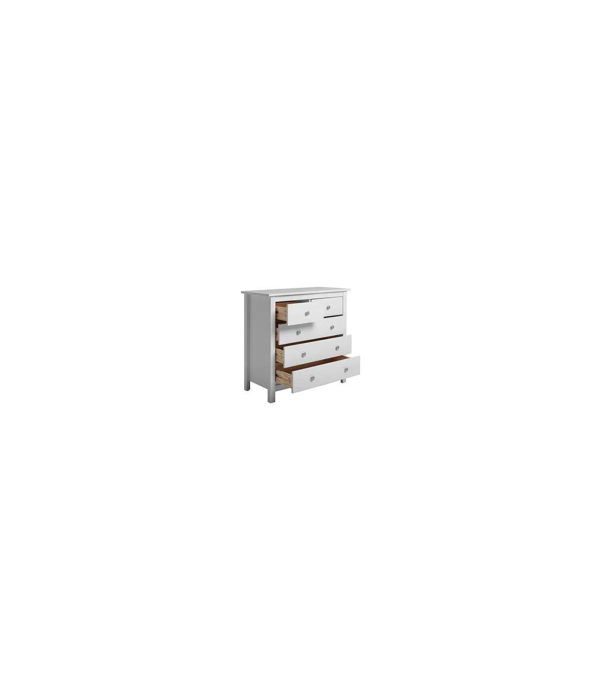 Con seis cajones provistos de guías metálicas, la cómoda Bella te proporciona un amplio espacio de almacenamiento para mantener tus pertenencias organizadas y al alcance. Las guías metálicas aseguran un movimiento suave al abrir y cerrar los cajones, facilitando su uso diario.