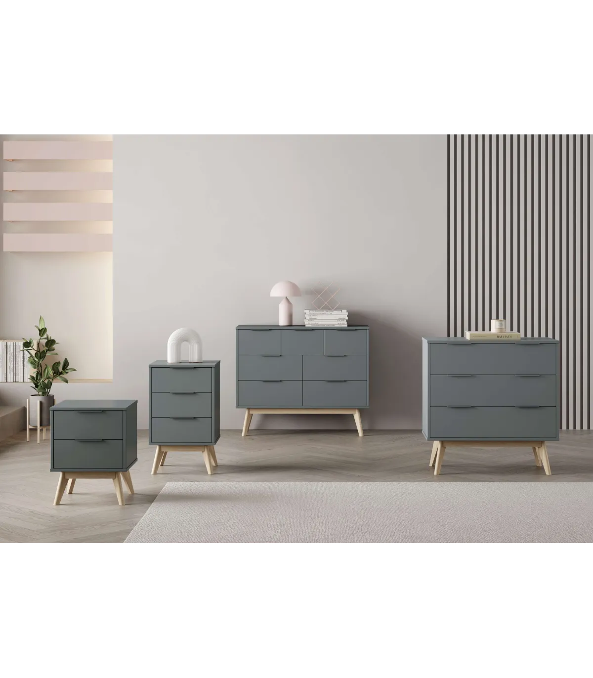 Gracias a su tamaño y diseño compacto, esta cómoda se adapta perfectamente a diversos espacios, desde dormitorios hasta salas de estar o recibidores. Sus tres cajones ofrecen un amplio espacio de almacenamiento para guardar ropa, accesorios, documentos u otros objetos personales.