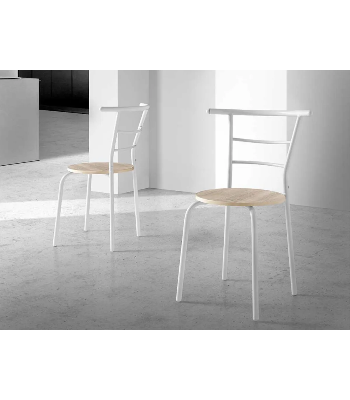 Conjunto mesa y 2 sillas Maríana, en acabado blanco y haya