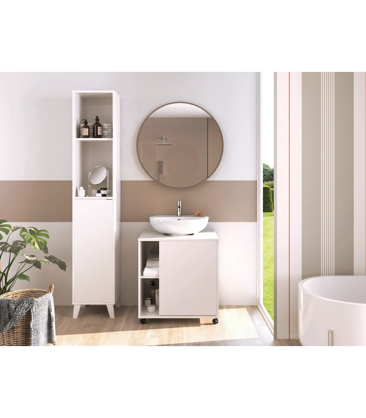 Organiza tu baño con estilo gracias al mueble para tapar pie de lavabo Sintra · Acabado blanco · Dimensiones perfectas.