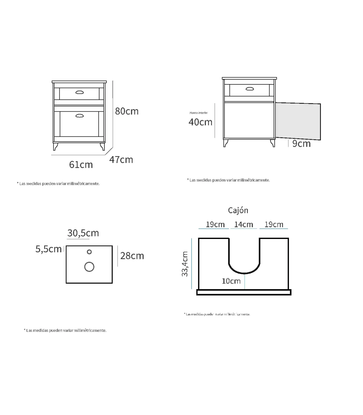 80 cm (alto) x 61 cm (ancho ) x 47 cm (prof.)