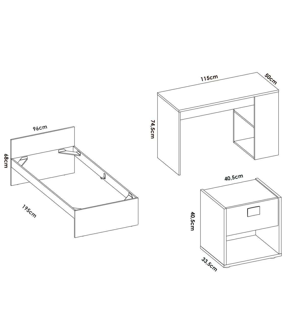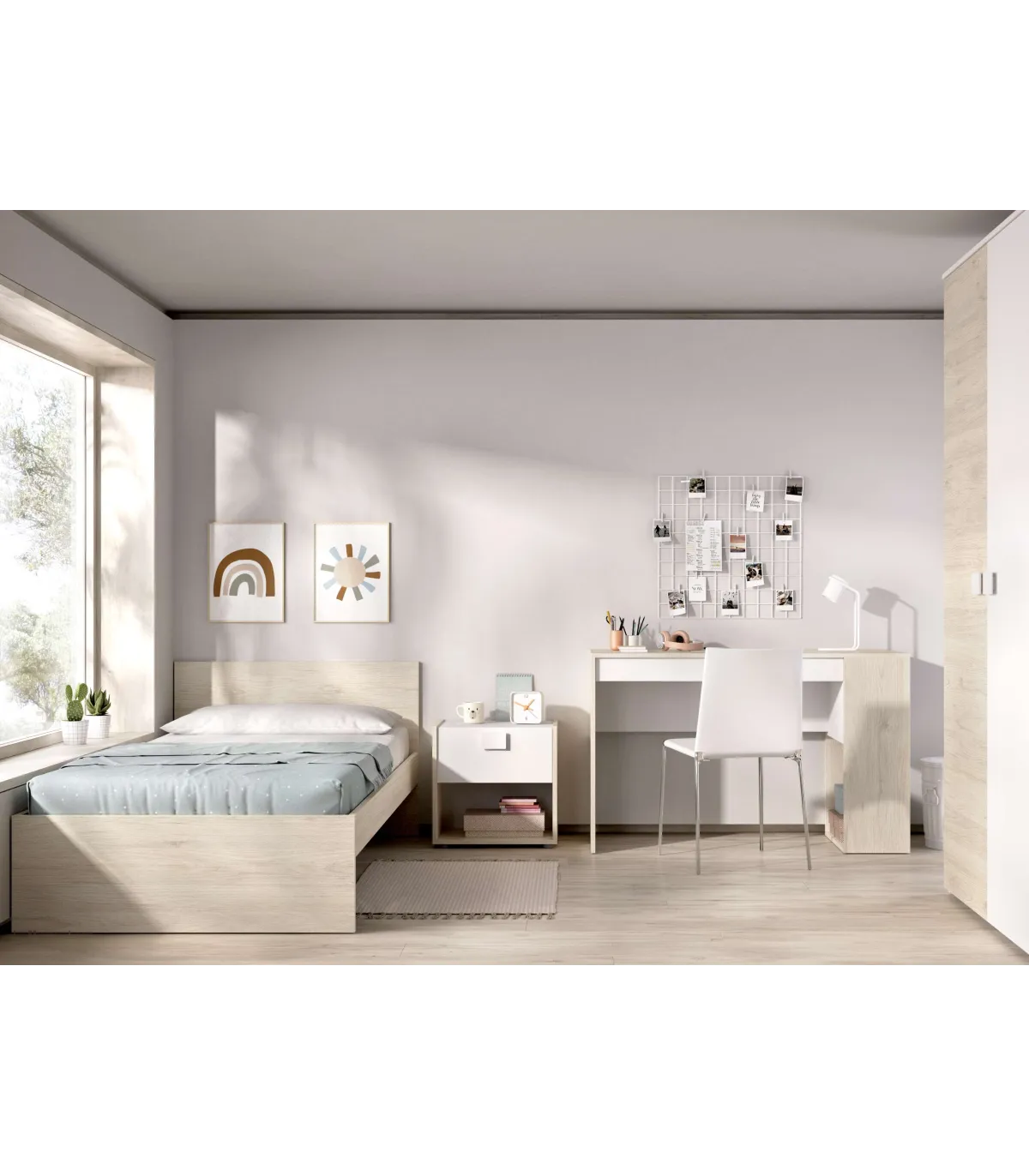 Conjunto juvenil , formado por cama, mesita y escritorio. Esta cama juvenil individual bicolor es la pieza perfecta
