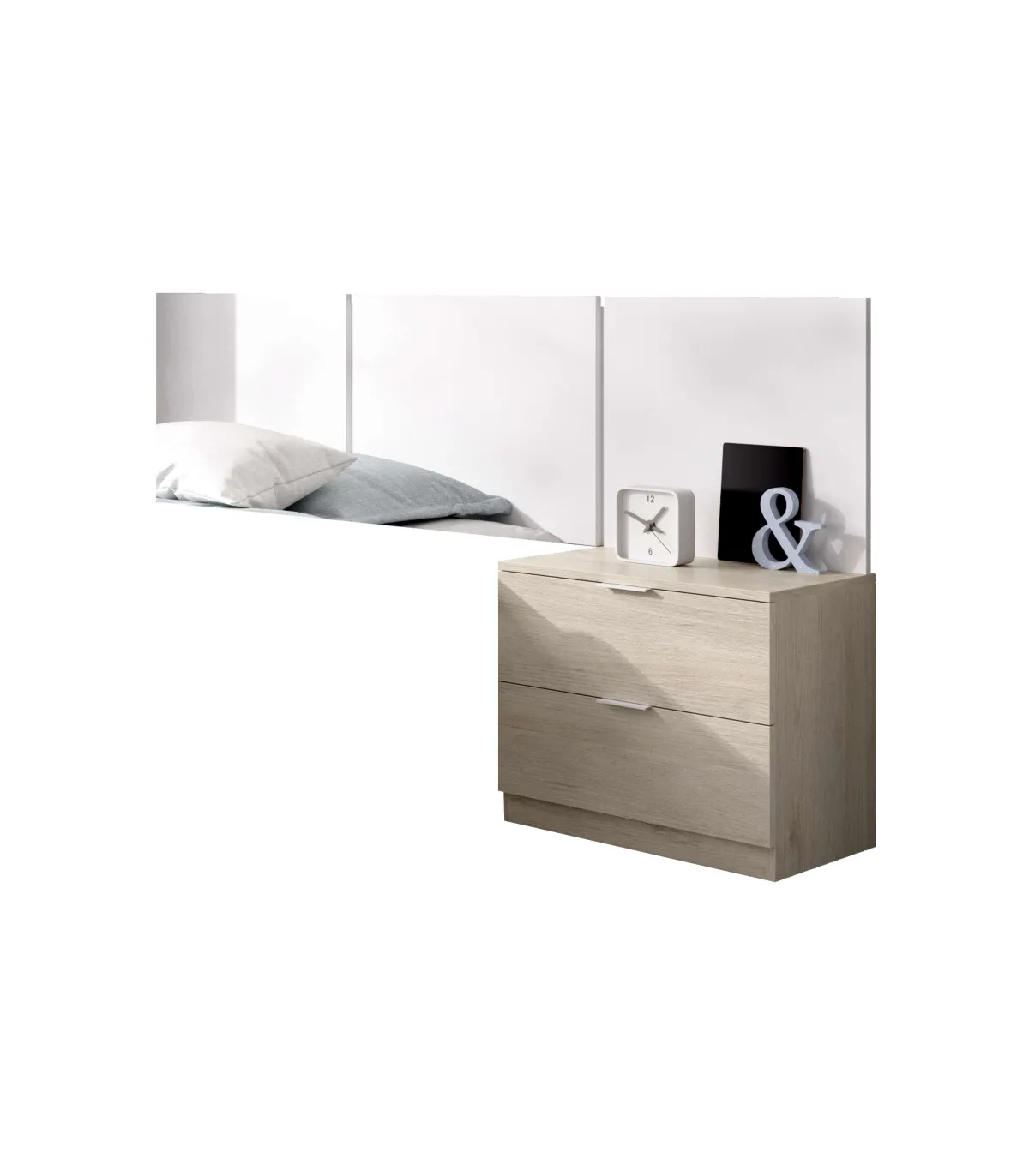 Conjunto juvenil cabecero + mesita Tito acabado blanco/natural.