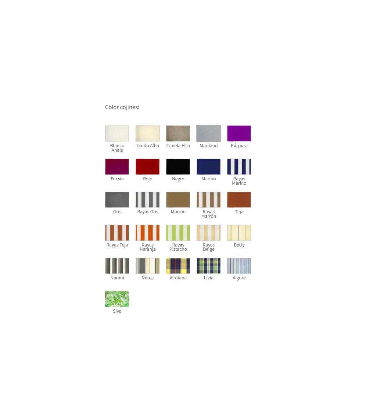 - Material de los cojines: Dralón. Alta densidad, resistentes a los rayos UVA.
