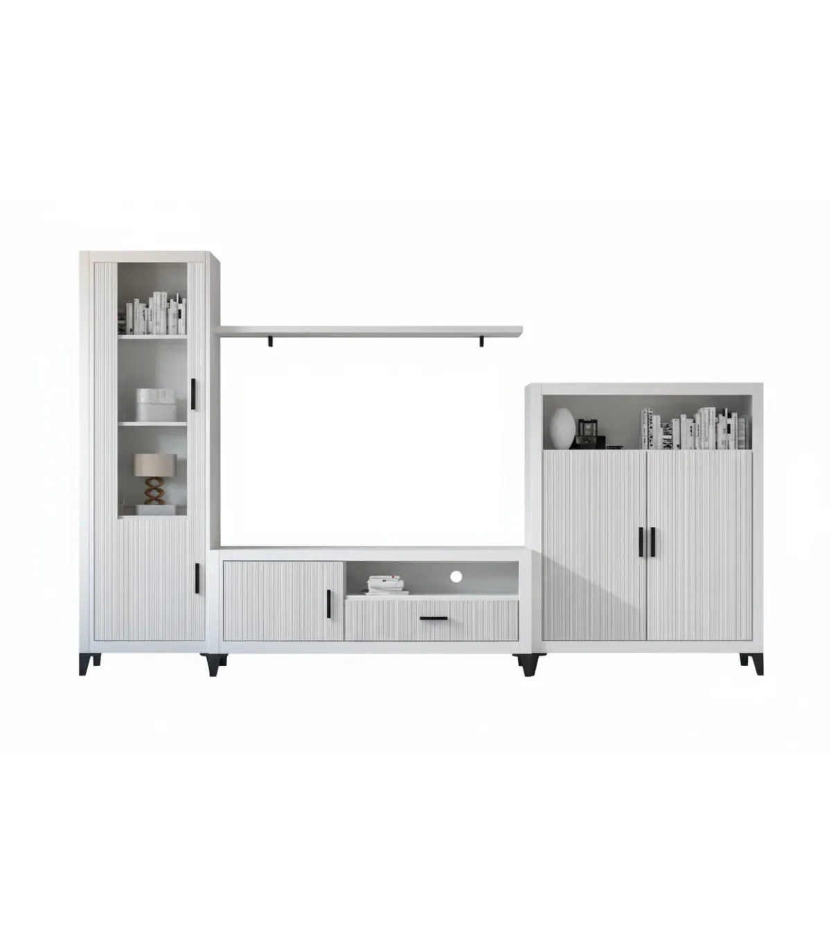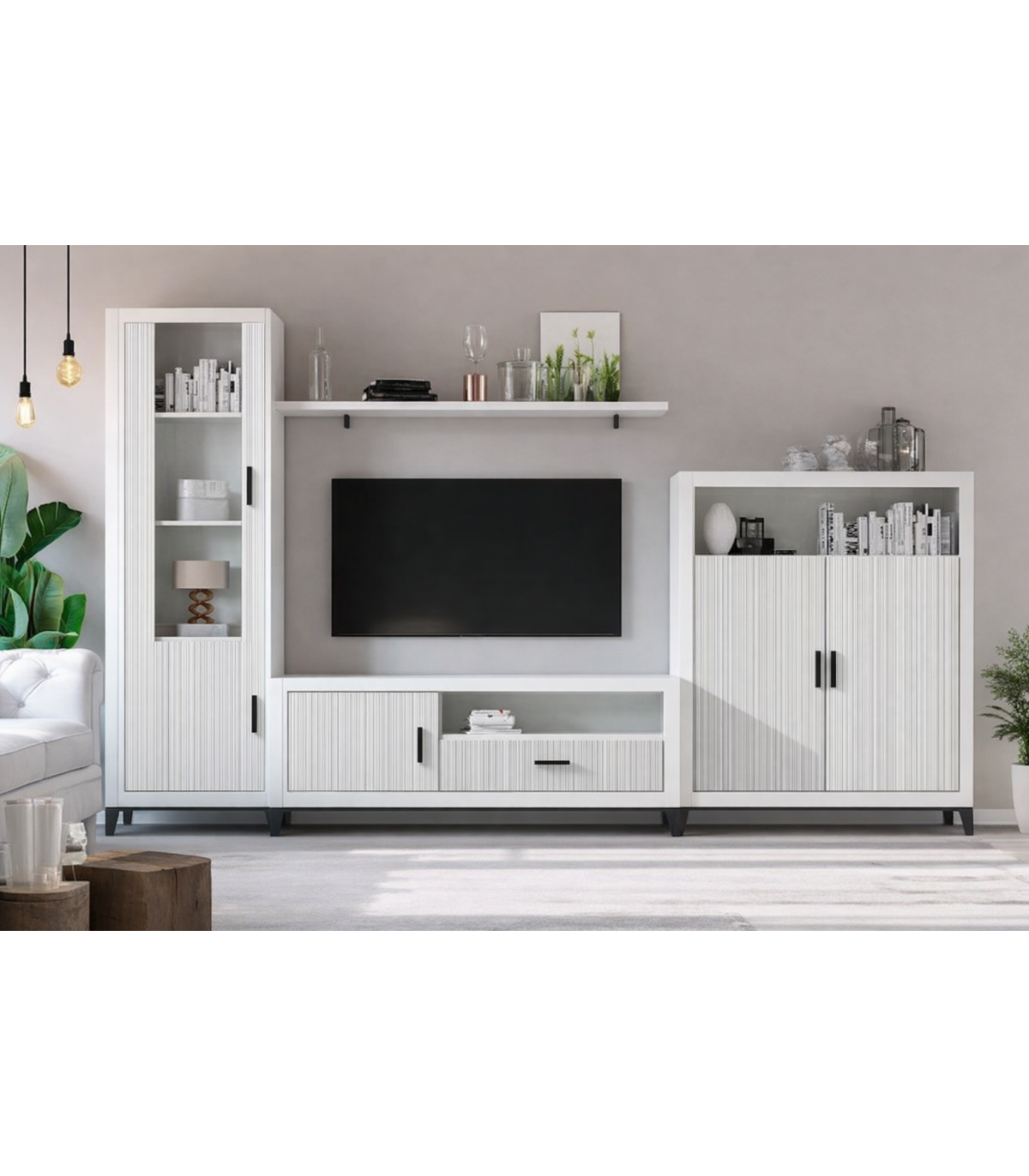 Transforma tu salón con la elegante composición Elena en blanco y gris · 300 cm de ancho · se sirve montado.
