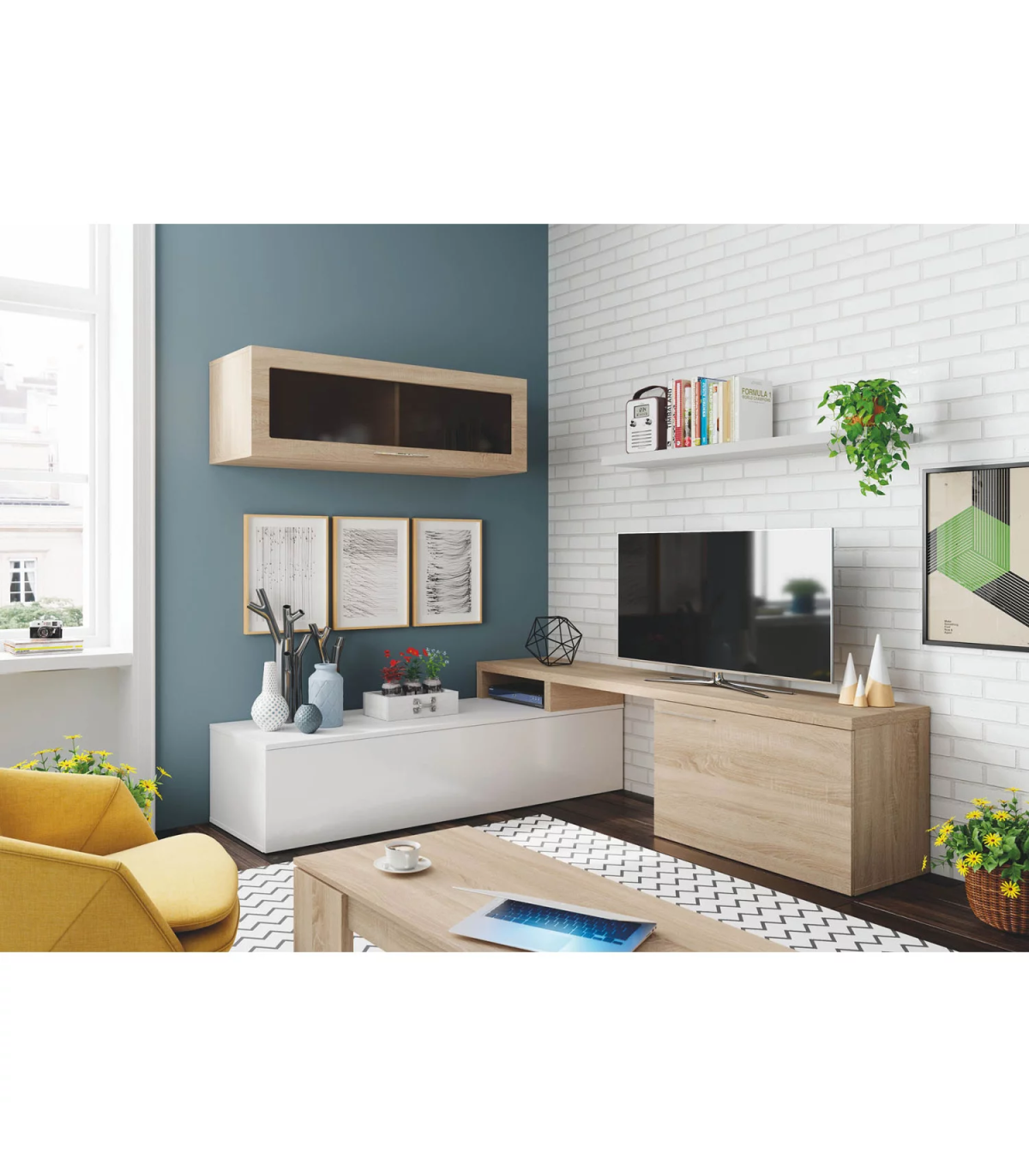Conjunto salón Nexus acabado roble canadian/blanco brillo, 41cm(alto) 20cm(ancho) 43cm(largo)
