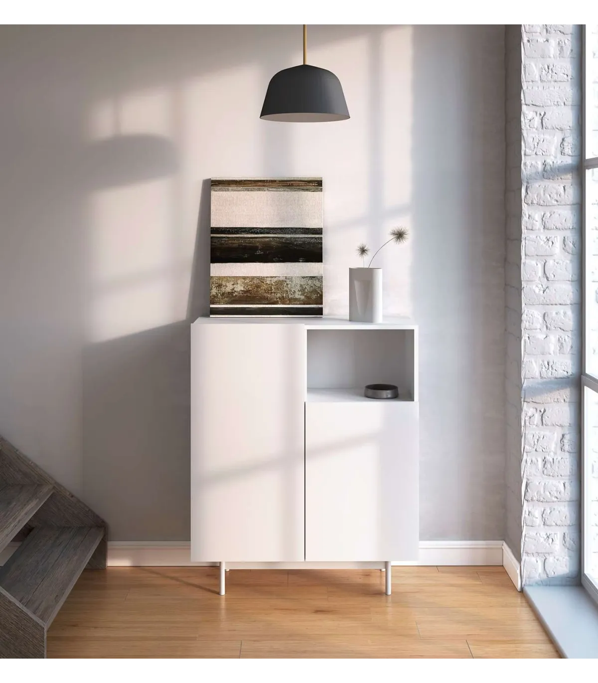 Mueble auxiliar multifuncional fabricado en melamina con acabado color roble, es un mueble versátil y práctico para organizar tus cosas. Cuenta con 2 puertas y 1 hueco, estantes interiores, ofreciendo un amplio espacio de almacenamiento. Es una solución ideal para mantener tus cosas ordenadas y fácilmente accesibles.