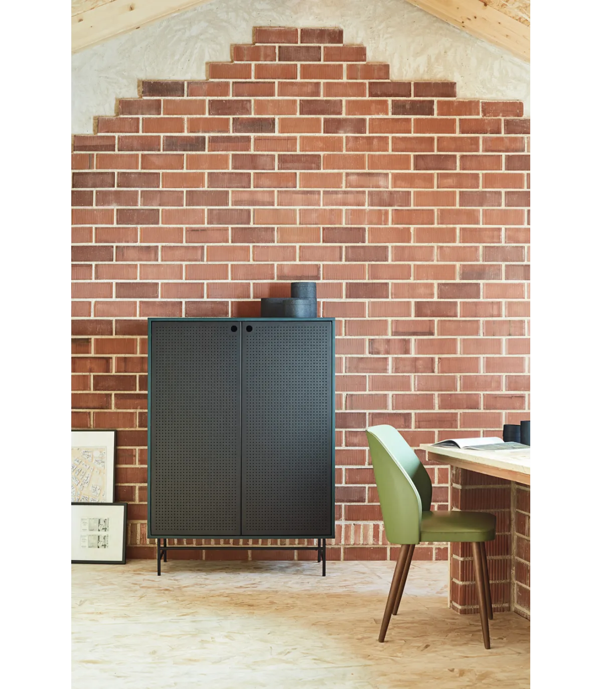 Organiza tu espacio con estilo gracias al mueble auxiliar Punto · 2 puertas · 4 cajones · acabado verde/negro.