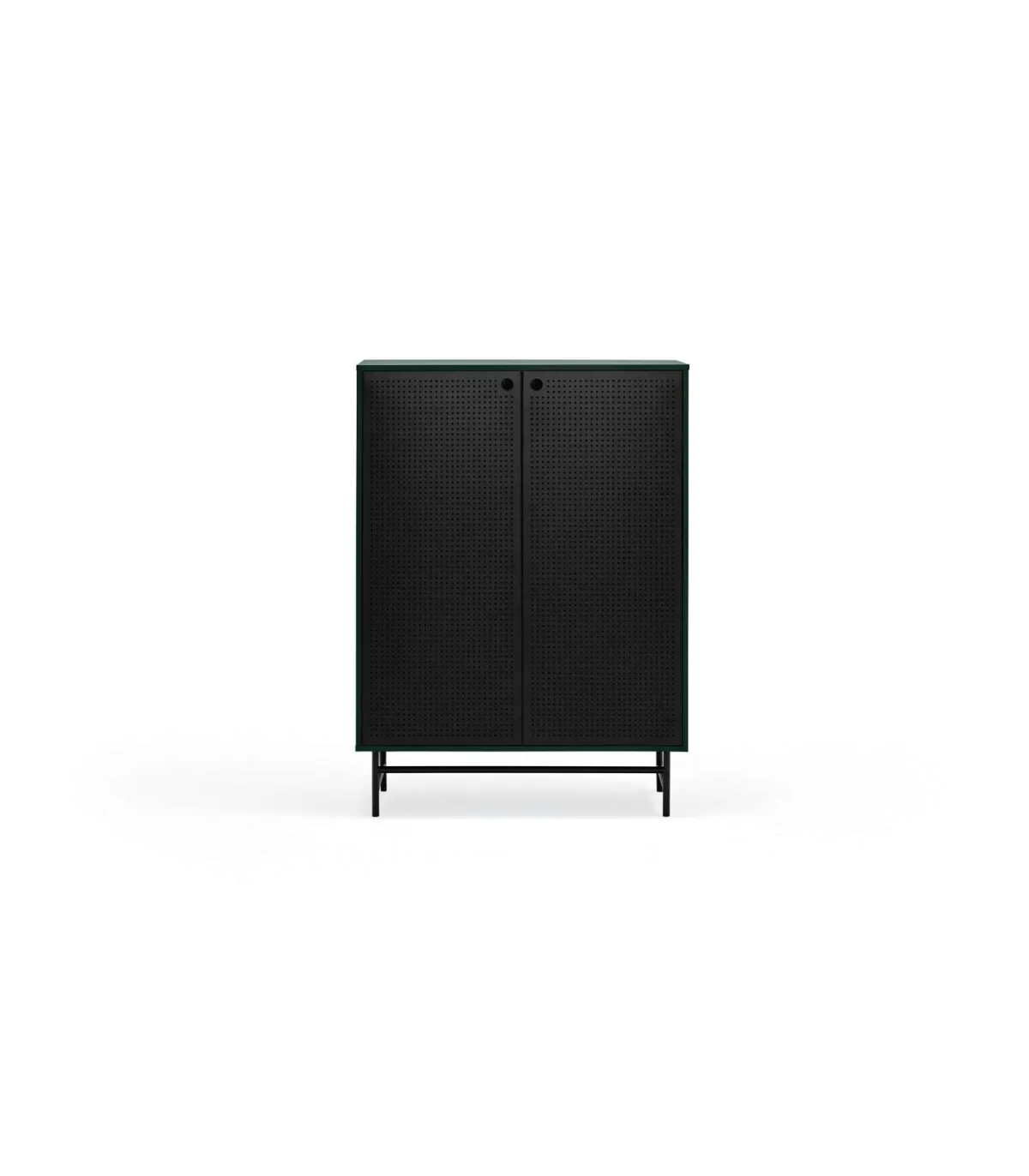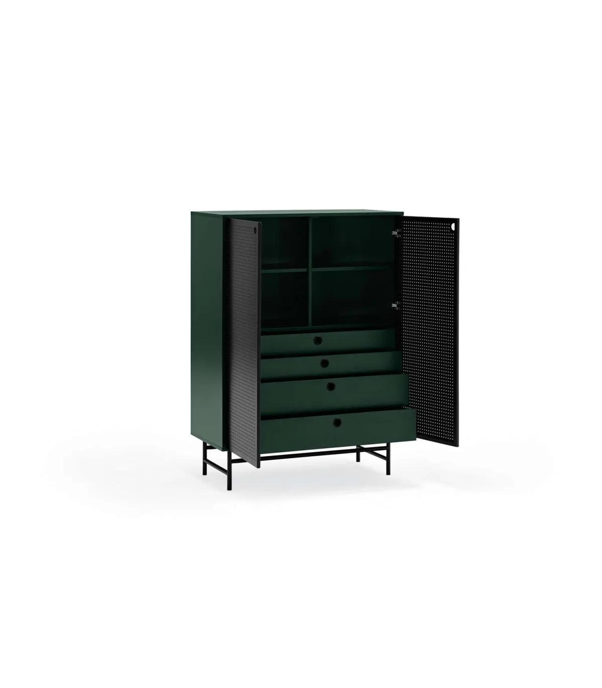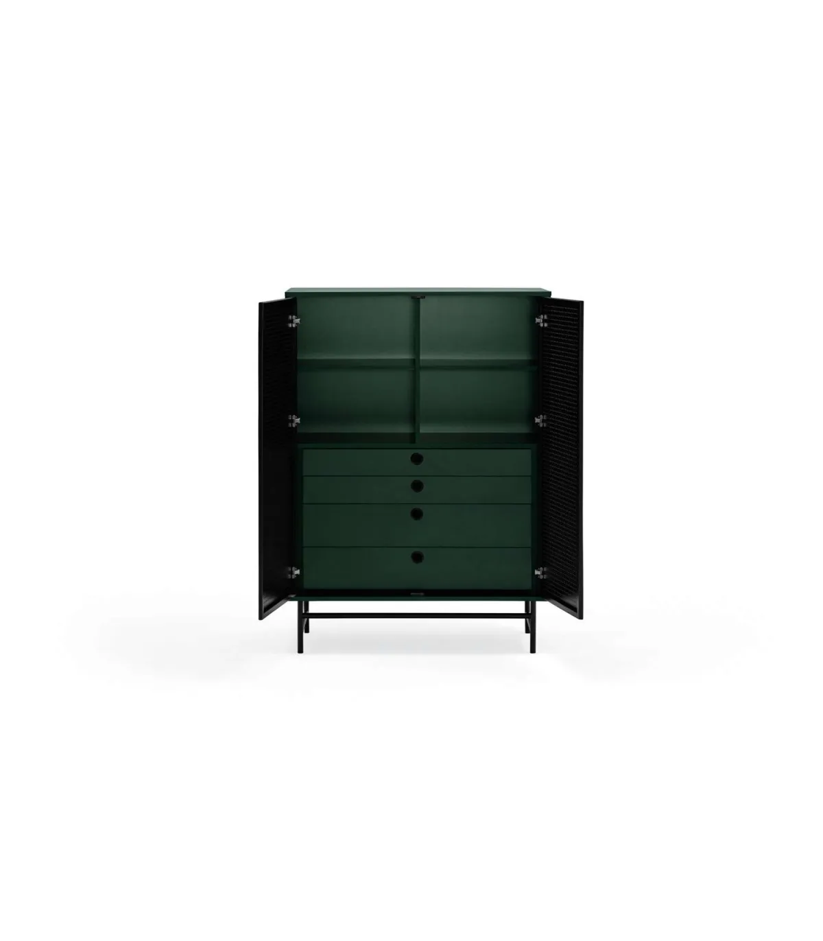 Mueble auxiliar modelo Punto 2 puertas 4 cajones interiores acabado verde/negro, 45cm(ancho) 130cm(alto) 93cm(largo)