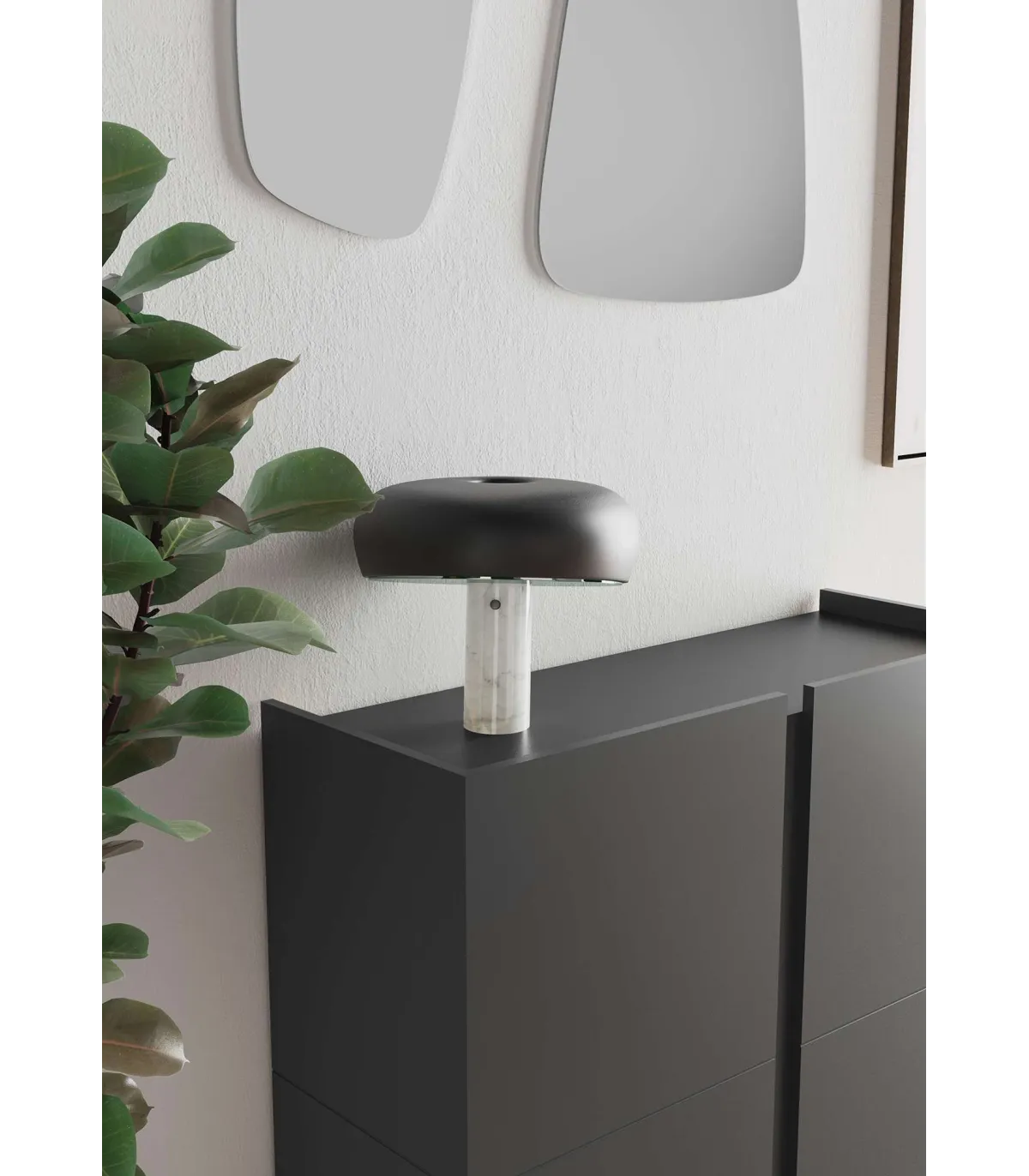 - Estructura y puertas en melamina color grafito.
