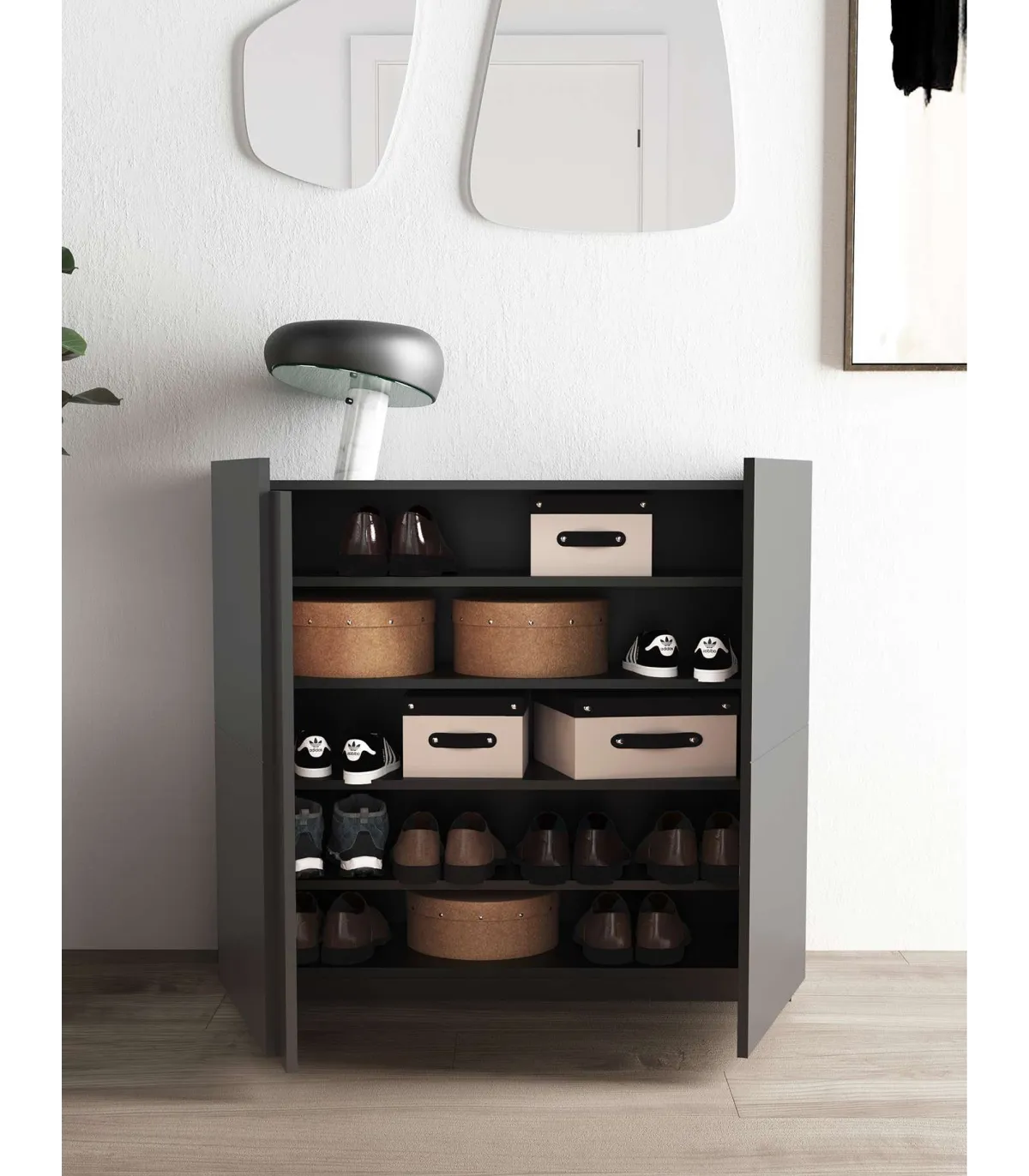 Recibidor zapatero modelo 516 acabado grafito, 90 x 95 x 35 (alto x ancho x fondo)