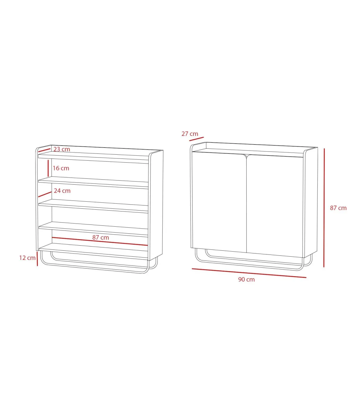 Medidas: 87 cm. de alto x 90 cm. de ancho x 25.5 cm. de fondo.
