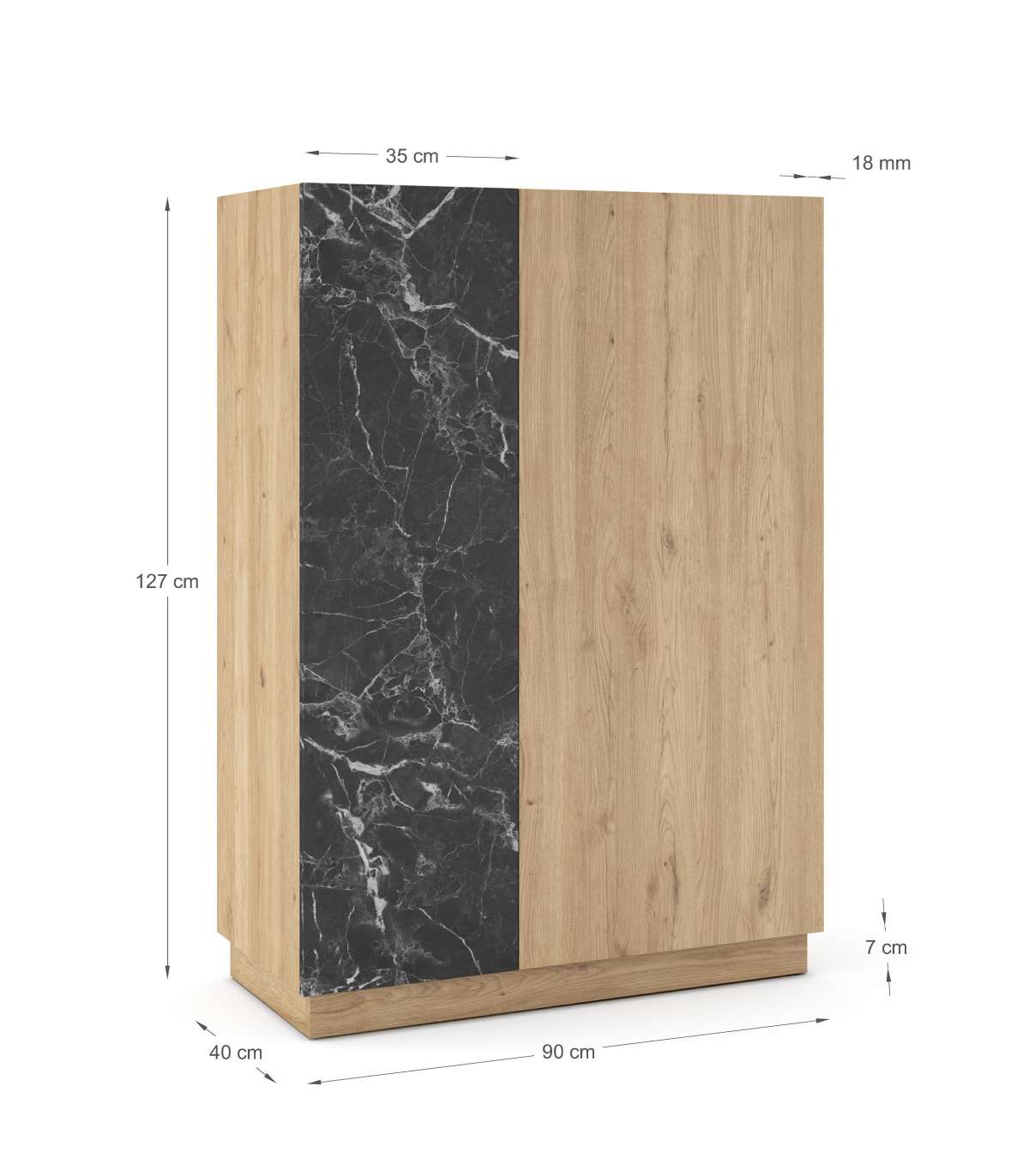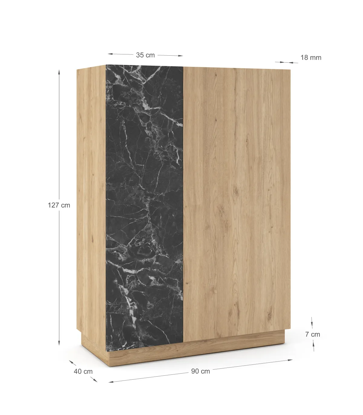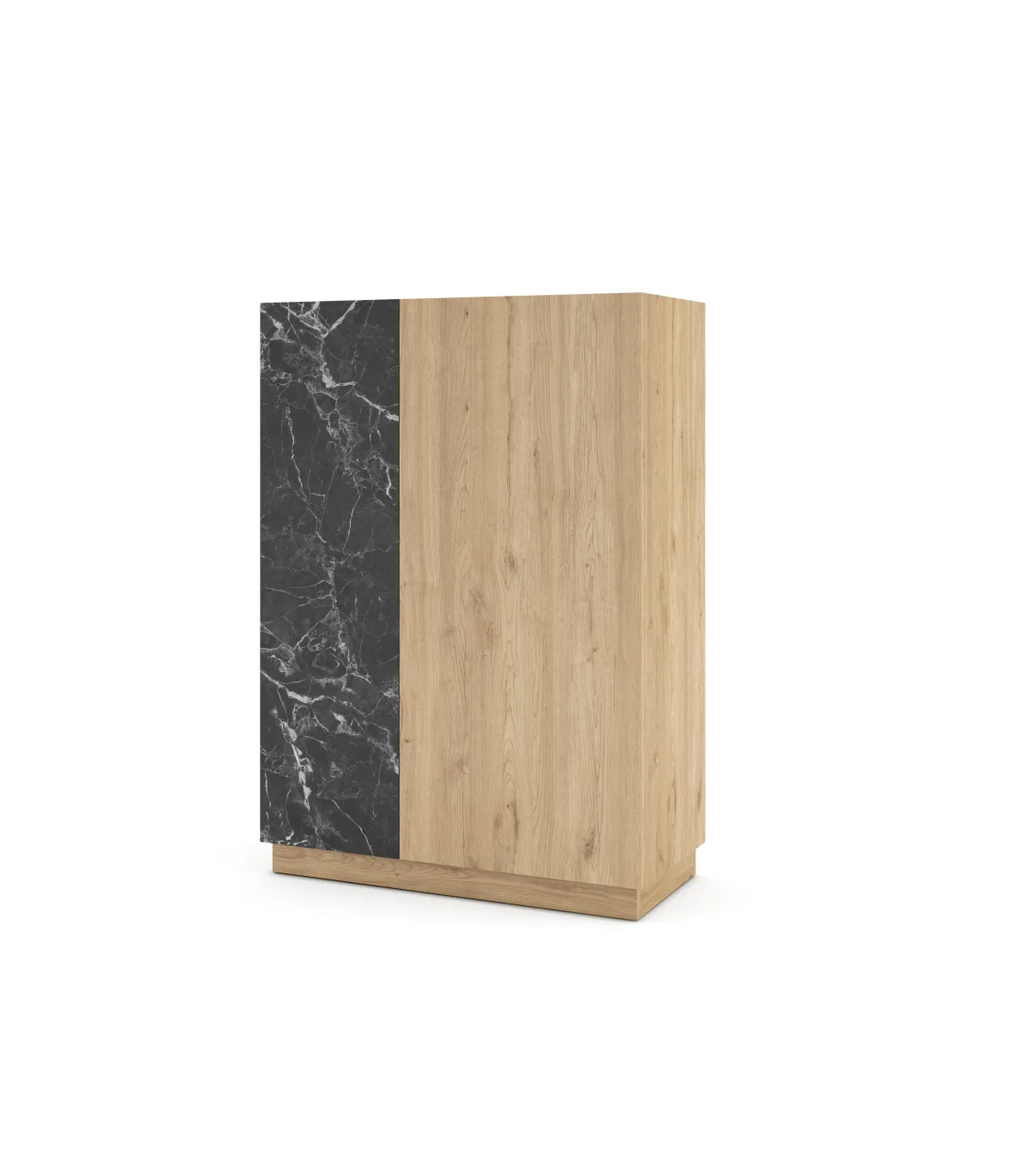 Mueble Auxiliar Alto mod. Laura – 2 Puertas, Acabado Roble y Negro Efecto Mármol