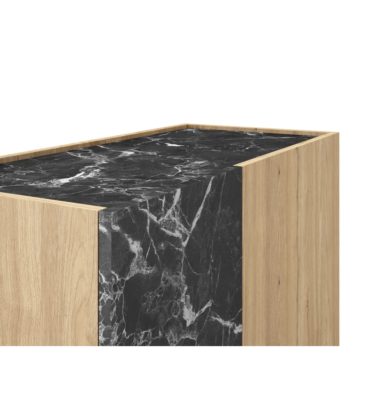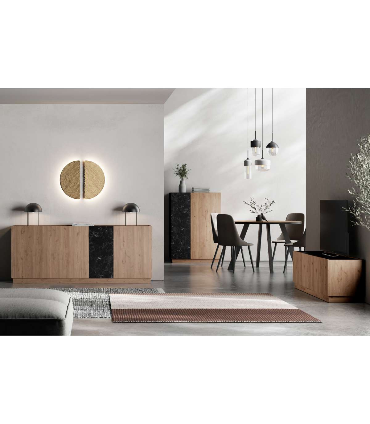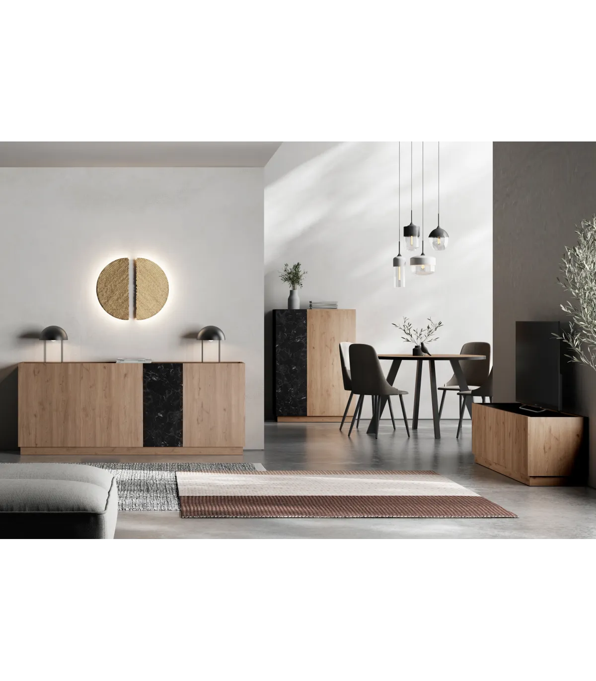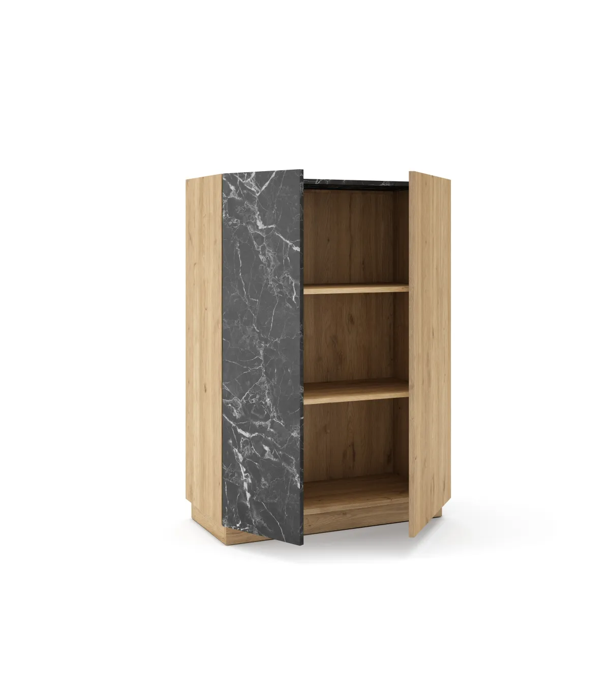 Mueble Auxiliar Alto mod. Laura – 2 Puertas, Acabado Roble y Negro Efecto Mármol