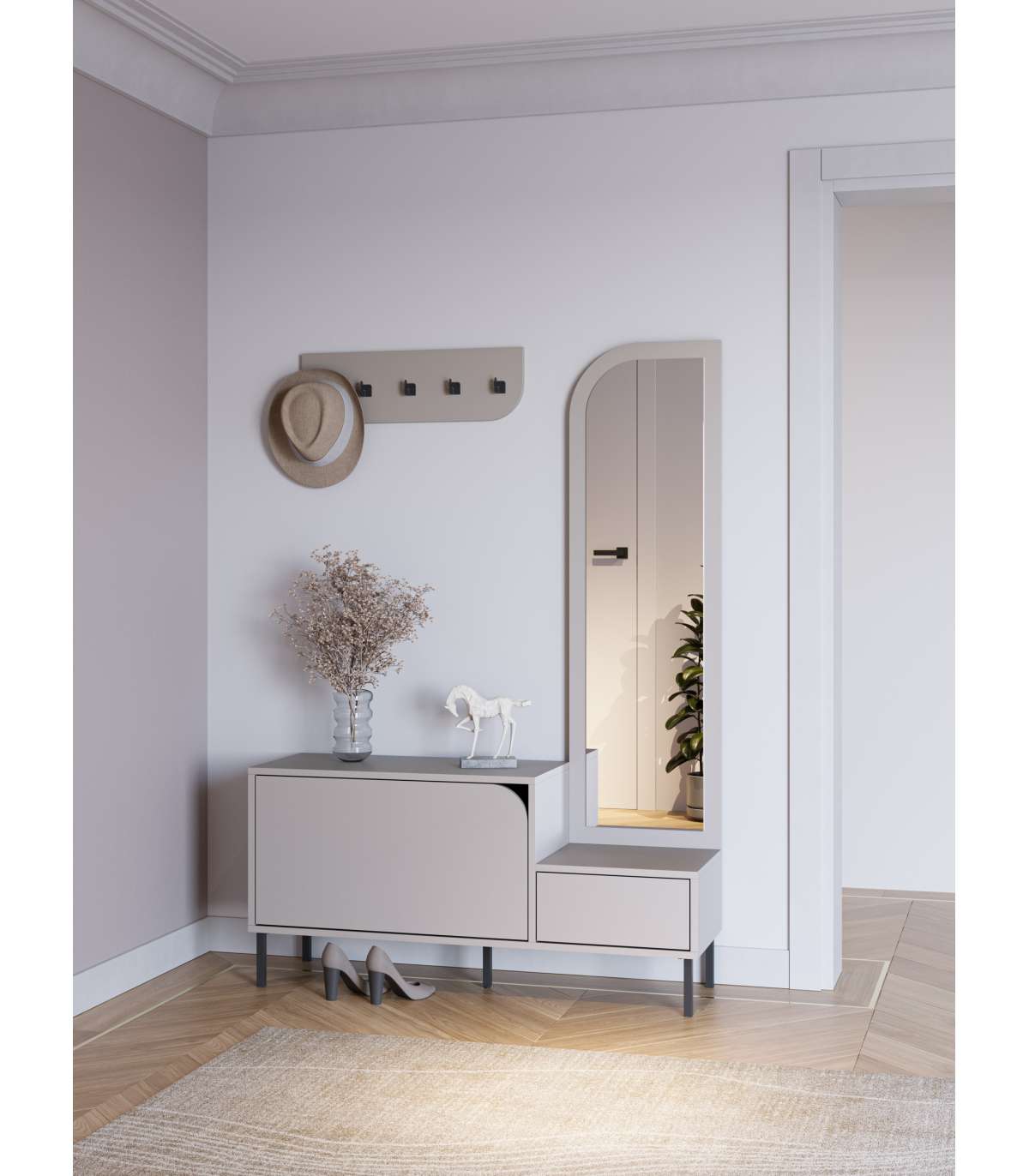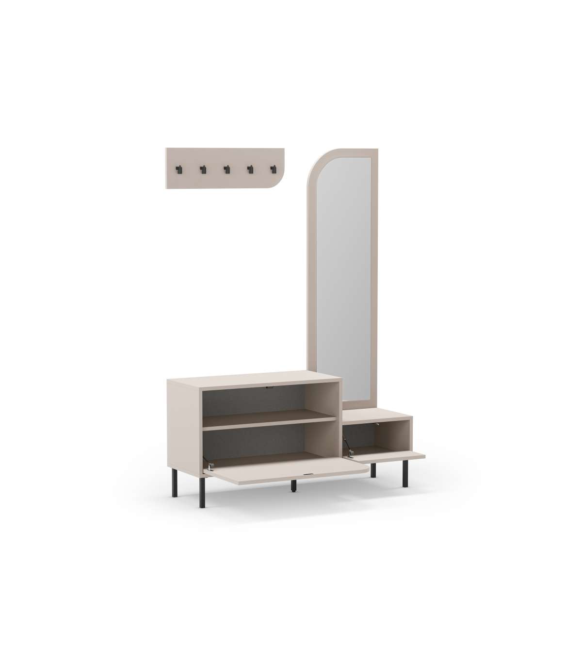 Organiza tu entrada con estilo gracias al recibidor zapatero Azahara · 2 puertas · espejo y percha · acabado crema.