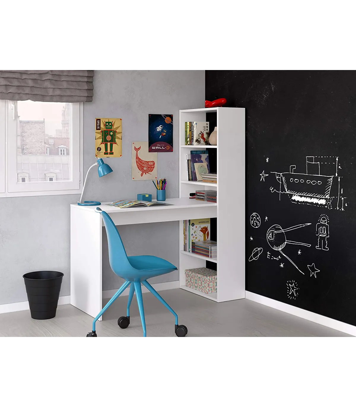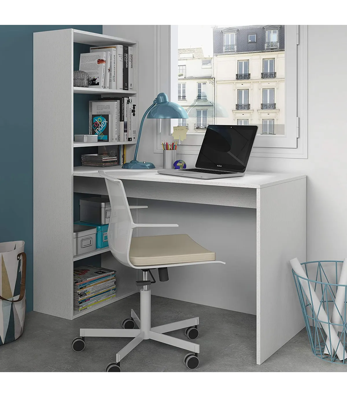Transforma tu espacio de trabajo con el escritorio Boston, funcional y elegante · Estantería integrada · Diseño moderno.