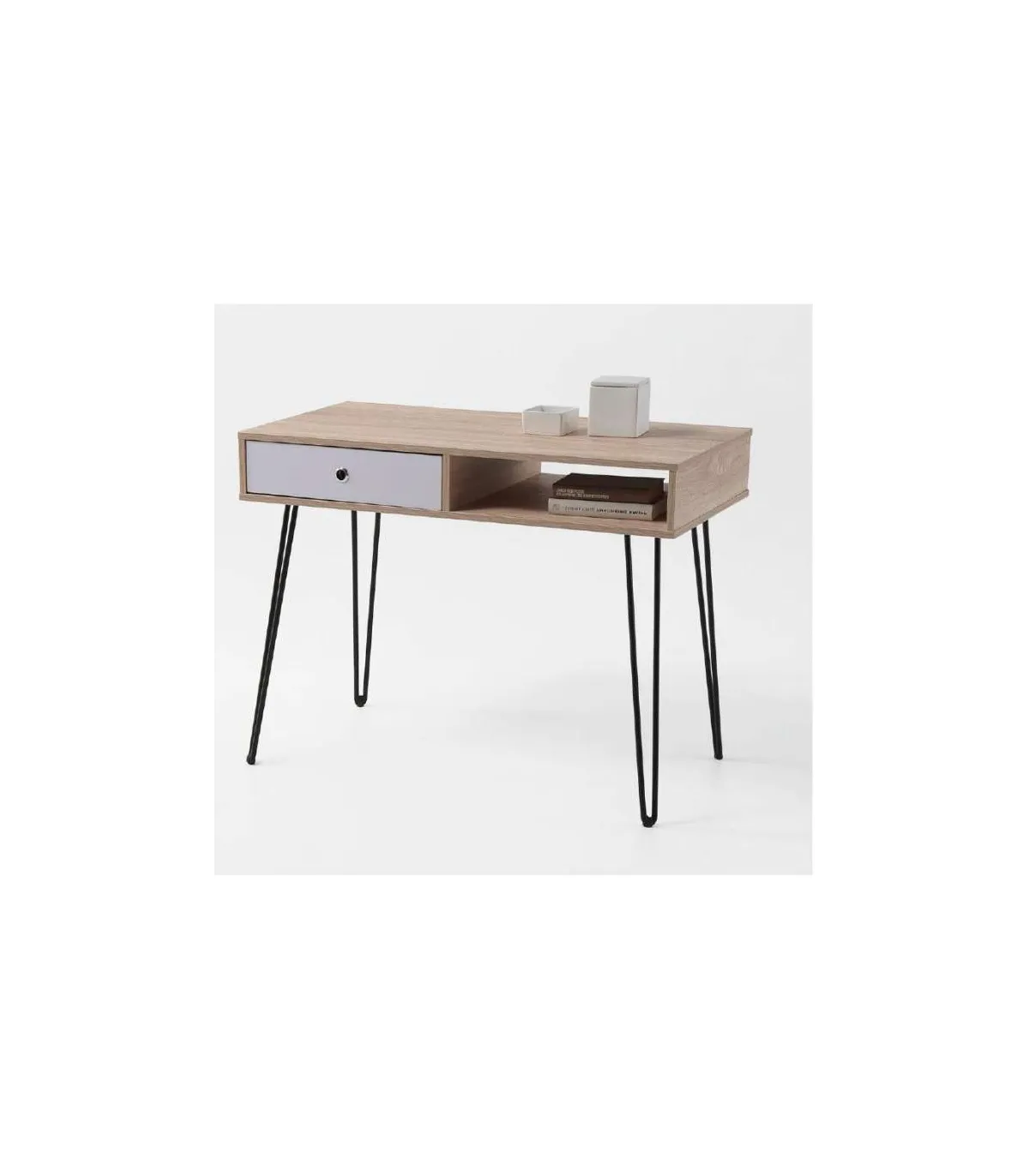 Mesa de escritorio Kala 1 hueco + 1 cajón acabado madera y blanco 76 cm(alto)100 cm(ancho)48 cm(fondo)