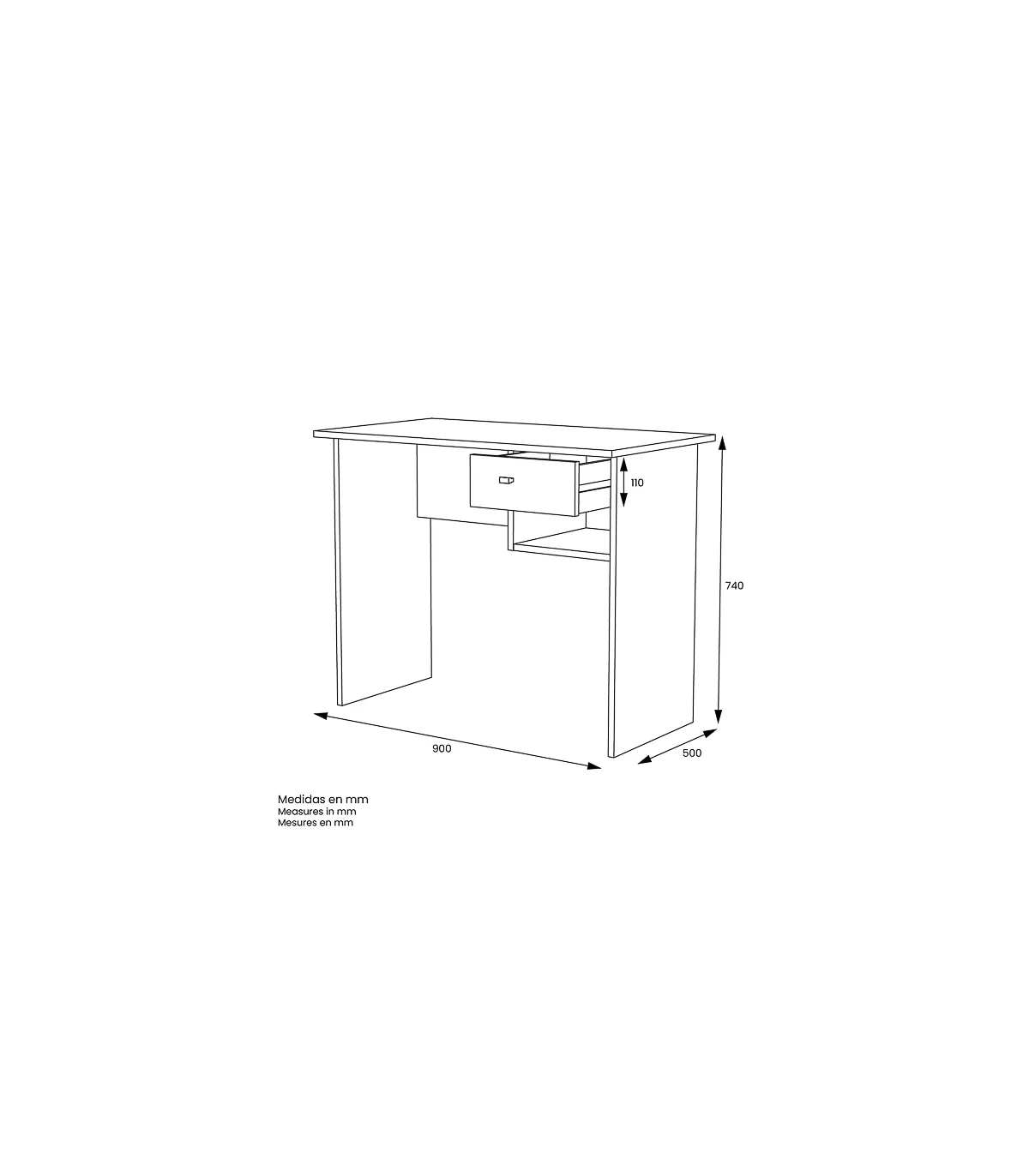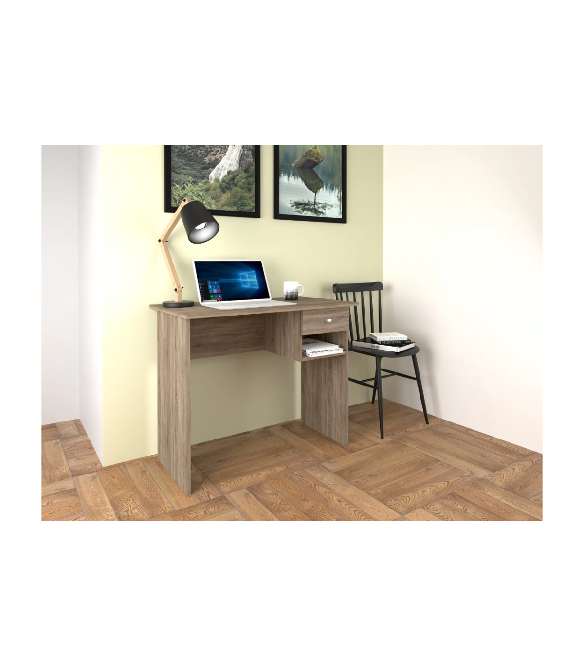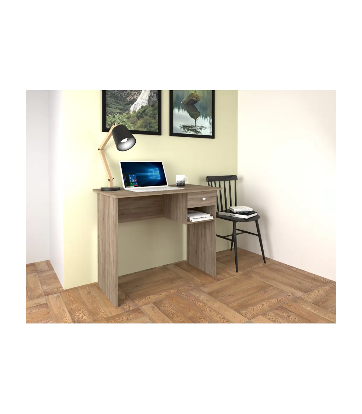 Transforma tu espacio de trabajo con el Escritorio Navas, funcional y elegante · Estante práctico · Cajón espacioso.