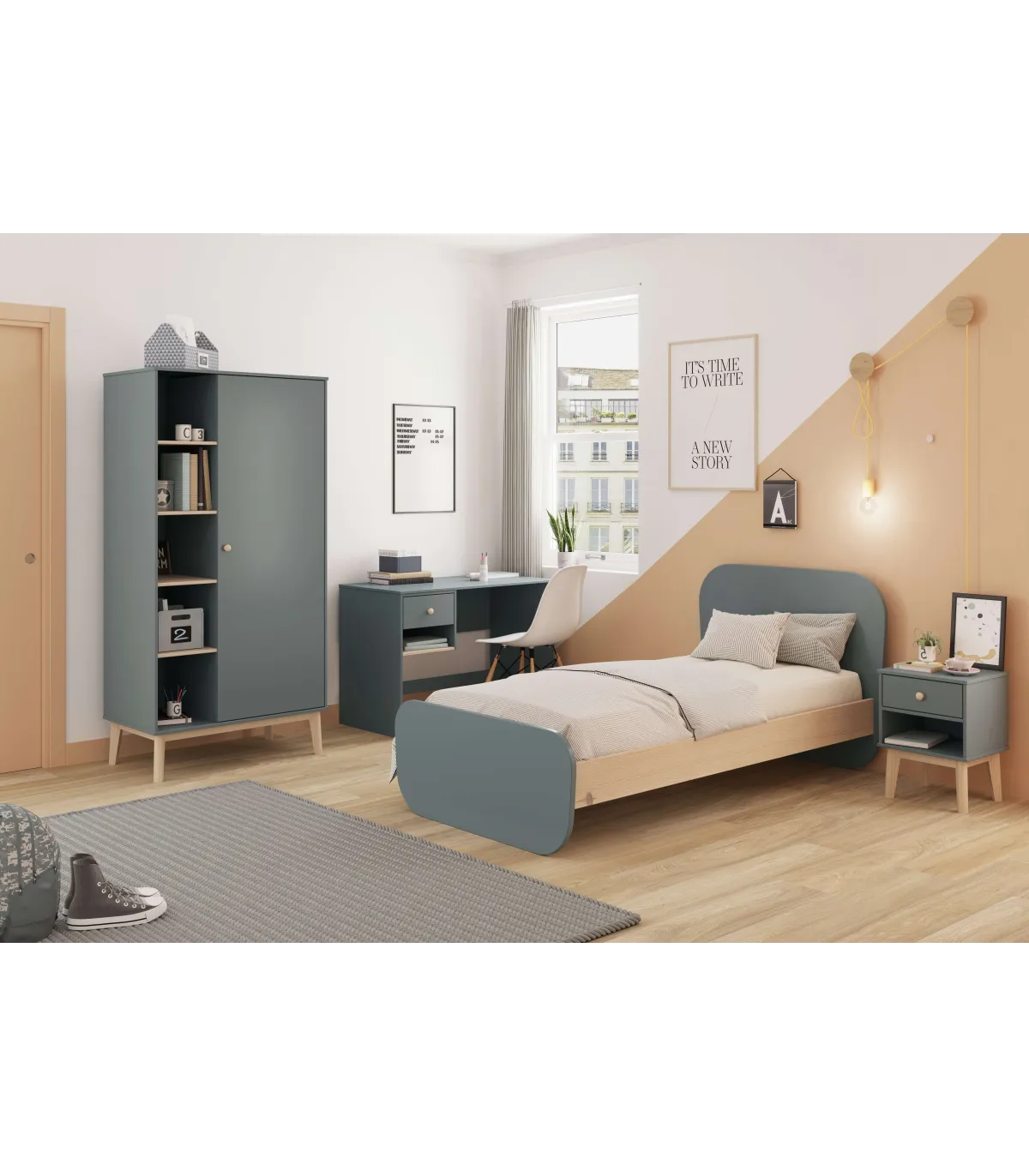 Cama juvenil DYLAN acabado verde kaki/cera blanca, 45/90cm(alto) 195.4cm(ancho) 106.5cm(fondo)