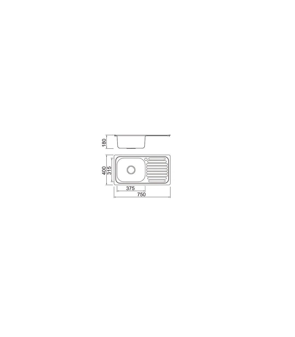 Fregadero Venezuela sin orificio y con escurridor a la izquierda,18 cm(alto)75 cm(ancho)40 cm(largo)