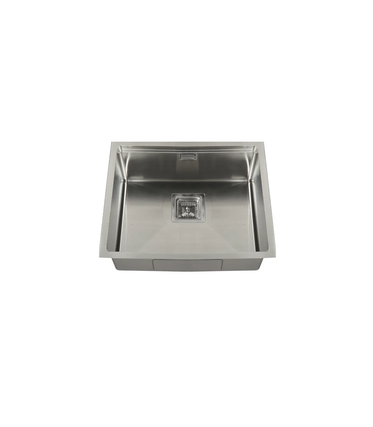 Fregadero de un seno en acero inoxidable con válvula cuadrada, muy original.