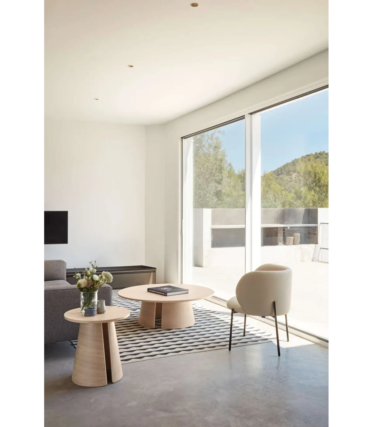 Mesa auxiliar de rincón modelo Cep, es simple y minimalista, donde sólo con dos piezas simétricas se genera la base sobre la que se apoya el tablero, generando un diseño sencillo que destaca la honestidad de la madera y el cuidado de cada detalle. Tapa y base están realizados en contrachapado de fresno tintado , donde se pueden apreciar las vetas.