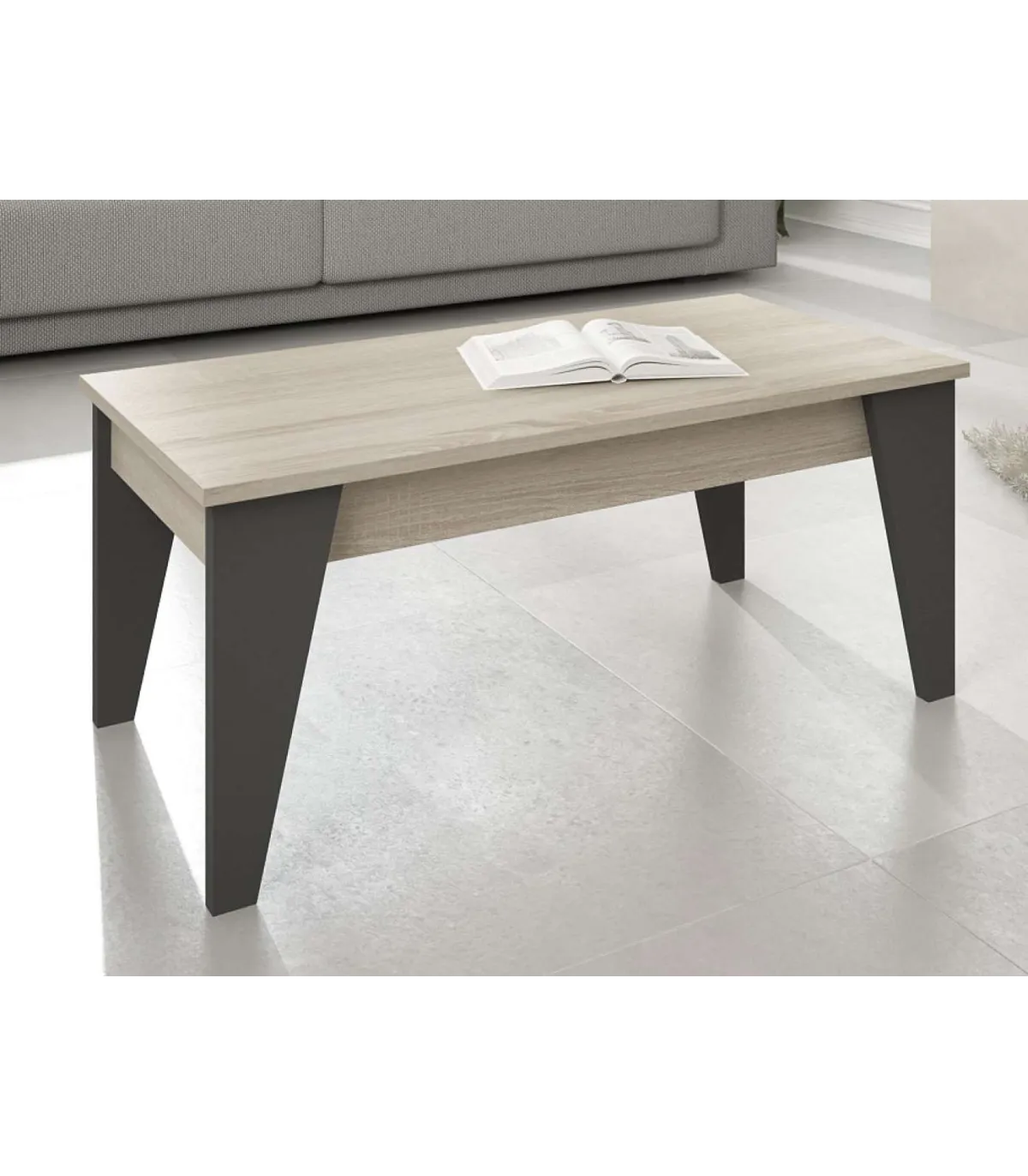 Disfruta de un espacio versátil con la mesa de centro elevable Ugijar · diseño moderno · acabado en ártico y grafito.