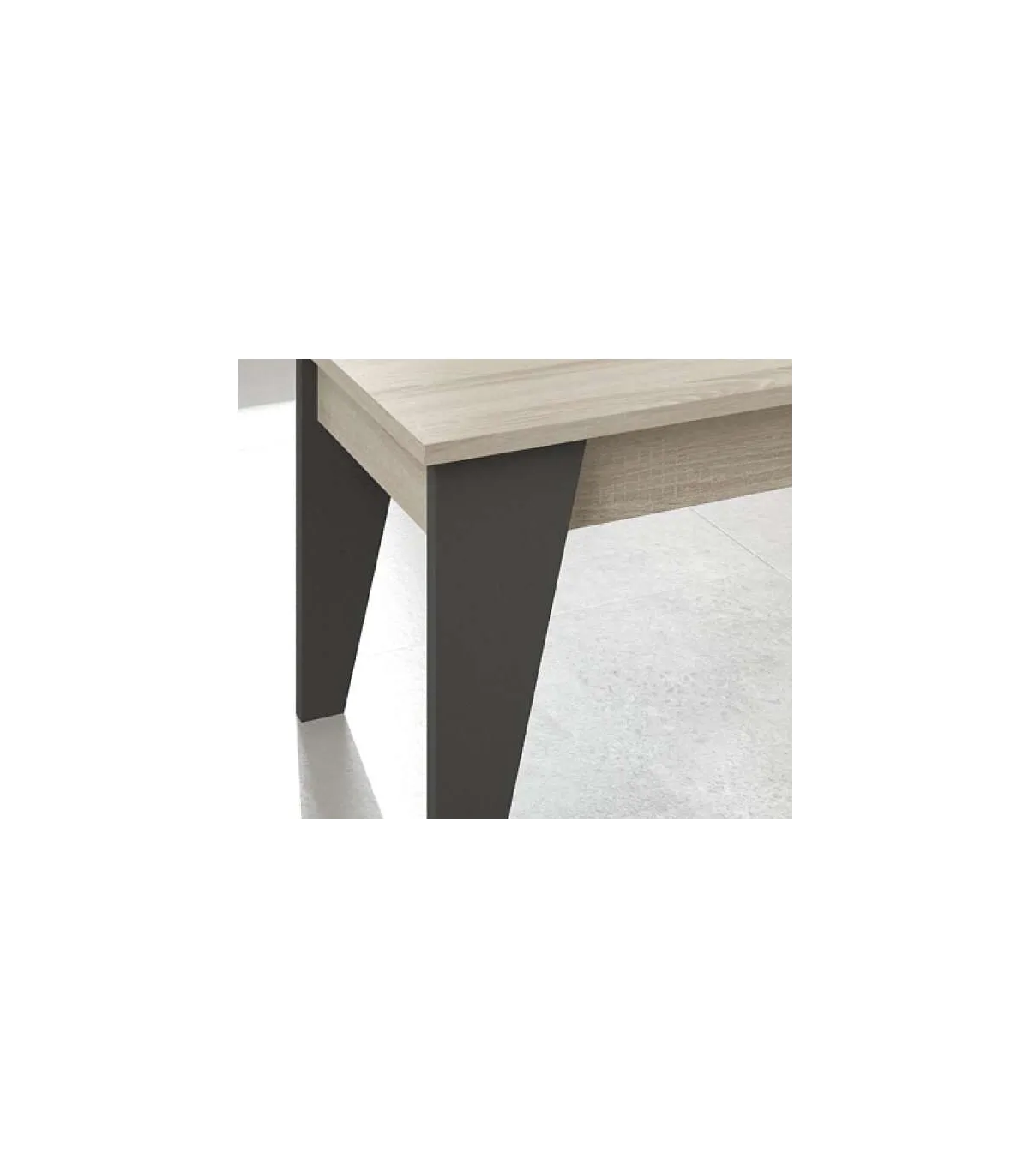Se compone de una tapa en color blanco ártico y patas en gris grafito, todo fabricado en melamina de alta calidad. Será el centro de atención de tu salón.