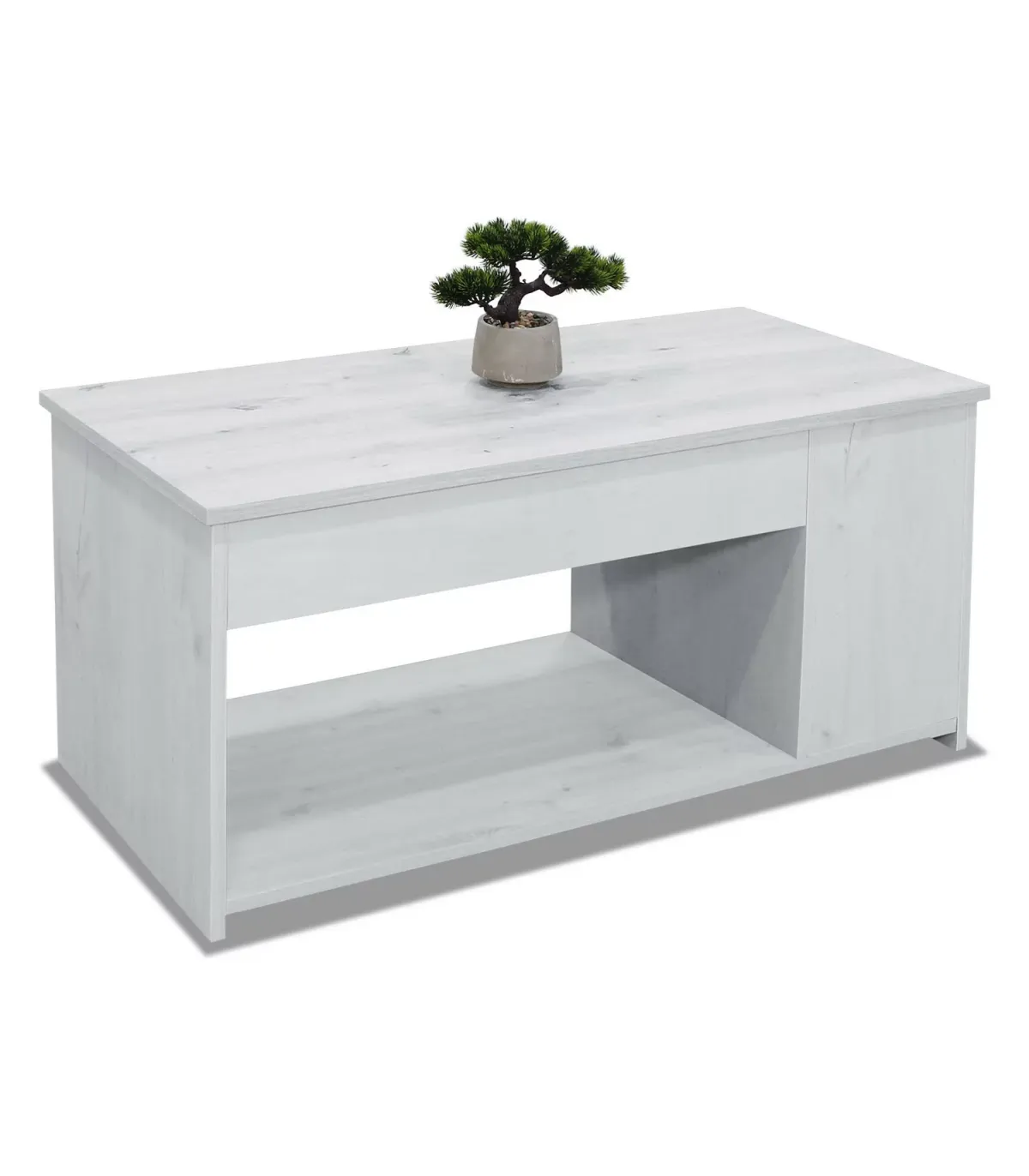Mesa centro elevable acabado blanco polar, 46cm(alto) 102cm(ancho) 55cm(largo)