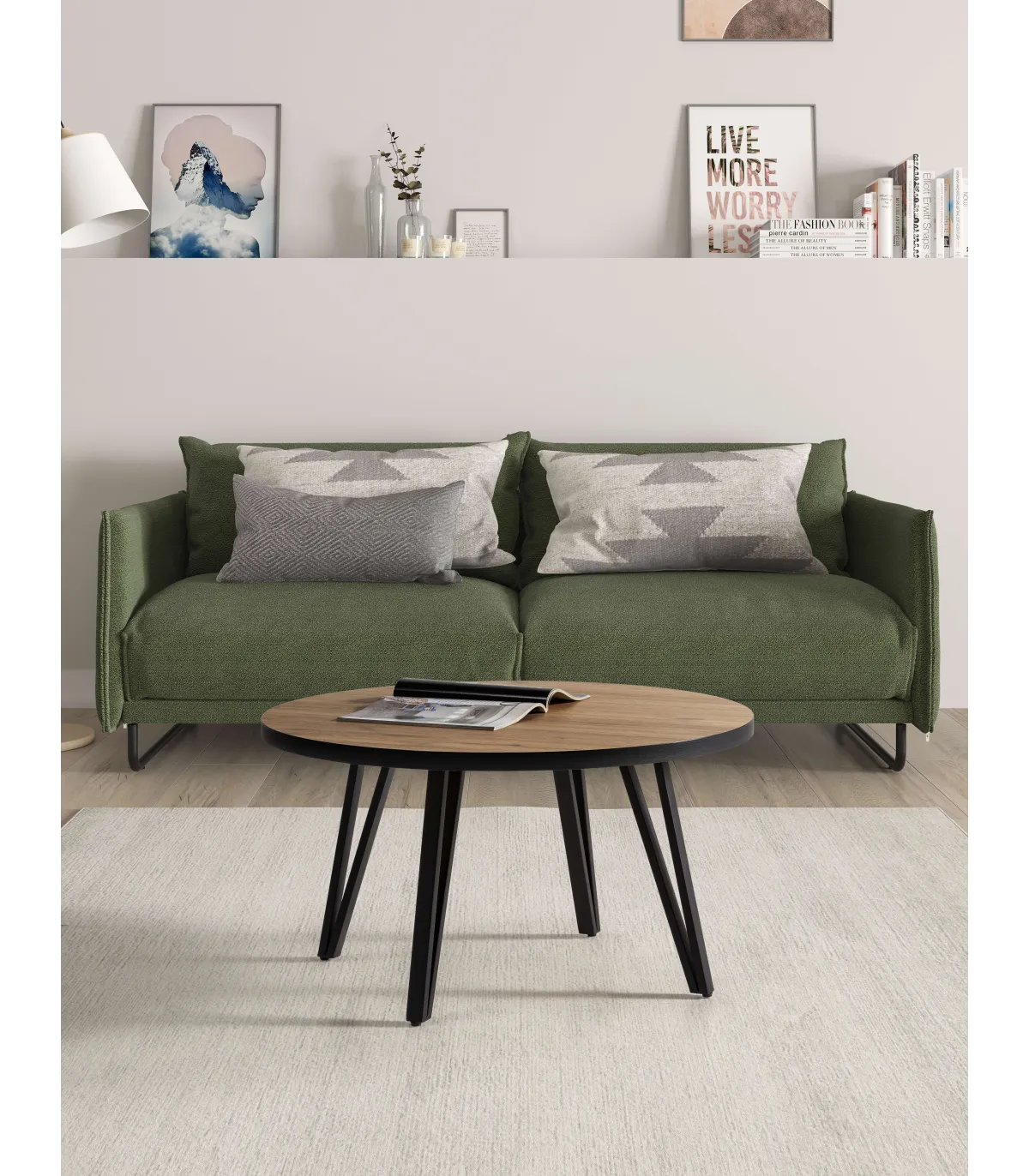 La Mesa de centro redonda es un elegante y funcional mueble diseñado para añadir estilo y practicidad a tu espacio. Cuenta con una tapa de melamina en un atractivo color natural, que le brinda un aspecto moderno y fresco. El canto en color bocamina agrega un toque de contraste y sofisticación. Las patas de metal en color negro ofrecen estabilidad y durabilidad, además de añadir un toque industrial a la estética general de la mesa.