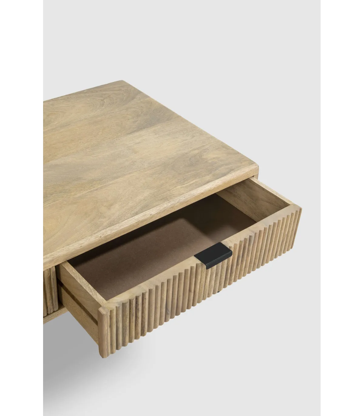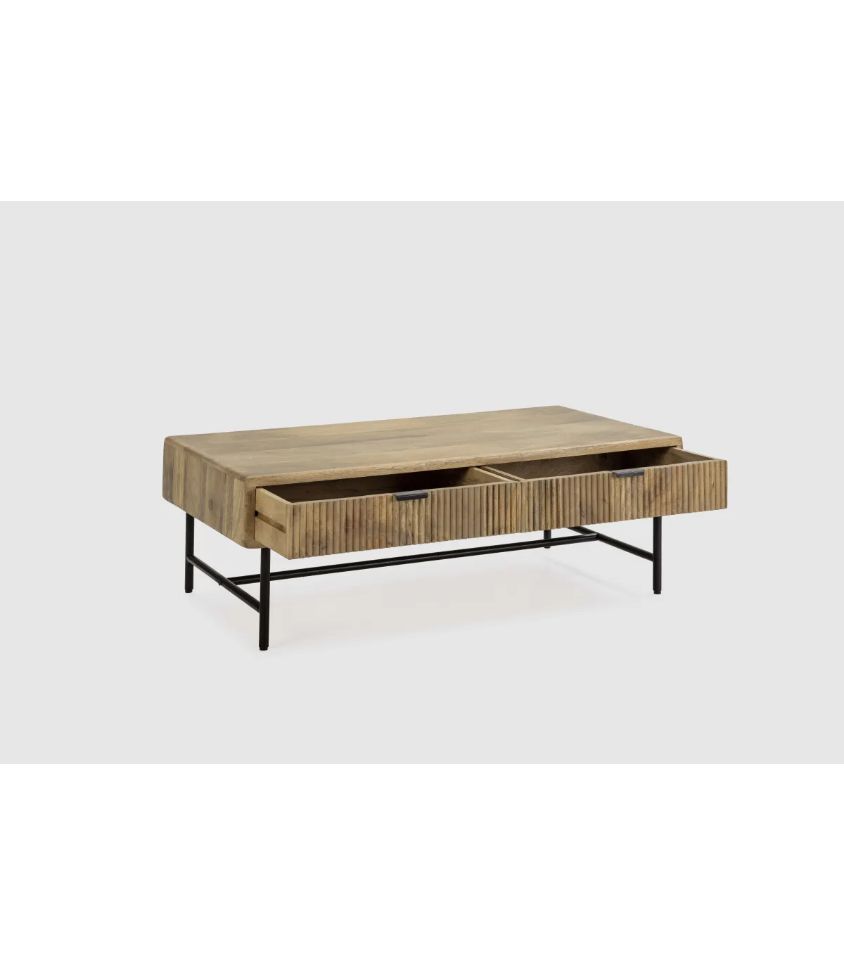 La Mesa de Centro modelo Michel es una pieza funcional y con estilo, fabricada en madera de mango que destaca por su durabilidad y su acabado natural cálido. Cuenta con dos cajones que ofrecen un práctico espacio de almacenamiento para mantener el área de estar ordenada, permitiendo guardar mandos, revistas o cualquier objeto pequeño. Sus patas de metal en color negro aportan un toque contemporáneo e industrial, creando un contraste visual atractivo. Esta mesa de centro es ideal para complementar cualquier salón, combinando lo rústico y lo moderno en un diseño sofisticado y práctico.