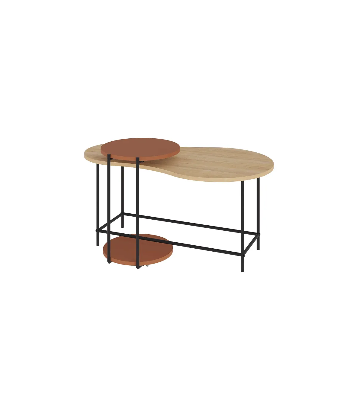 Set de 2 mesas de centro modelo Rolan acabado roble/terracota, 53.8cm(alto) 102.5cm(ancho) 65m(fondo).