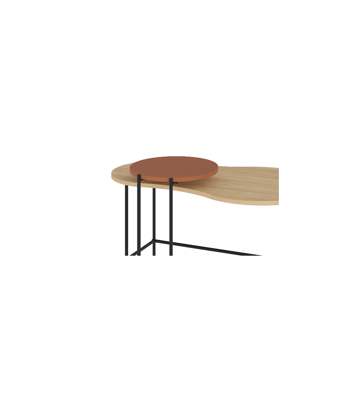 El Set de 2 Mesas de Centro modelo Rolan es una combinación elegante y funcional, perfecta para añadir estilo y practicidad a cualquier sala de estar. Las tapas están fabricadas en melamina con un acabado en roble y terracota, aportando calidez y un toque moderno al espacio. Las patas de metal en color negro ofrecen estabilidad y un contraste contemporáneo que realza el diseño. Estas mesas pueden usarse juntas o por separado, permitiendo adaptarse a diferentes necesidades y estilos decorativos. Este set es ideal para quienes buscan funcionalidad y estética en su mobiliario, combinando materiales duraderos y un diseño sofisticado.