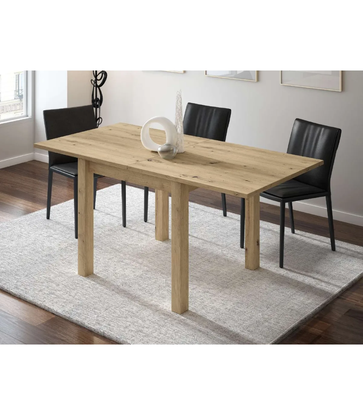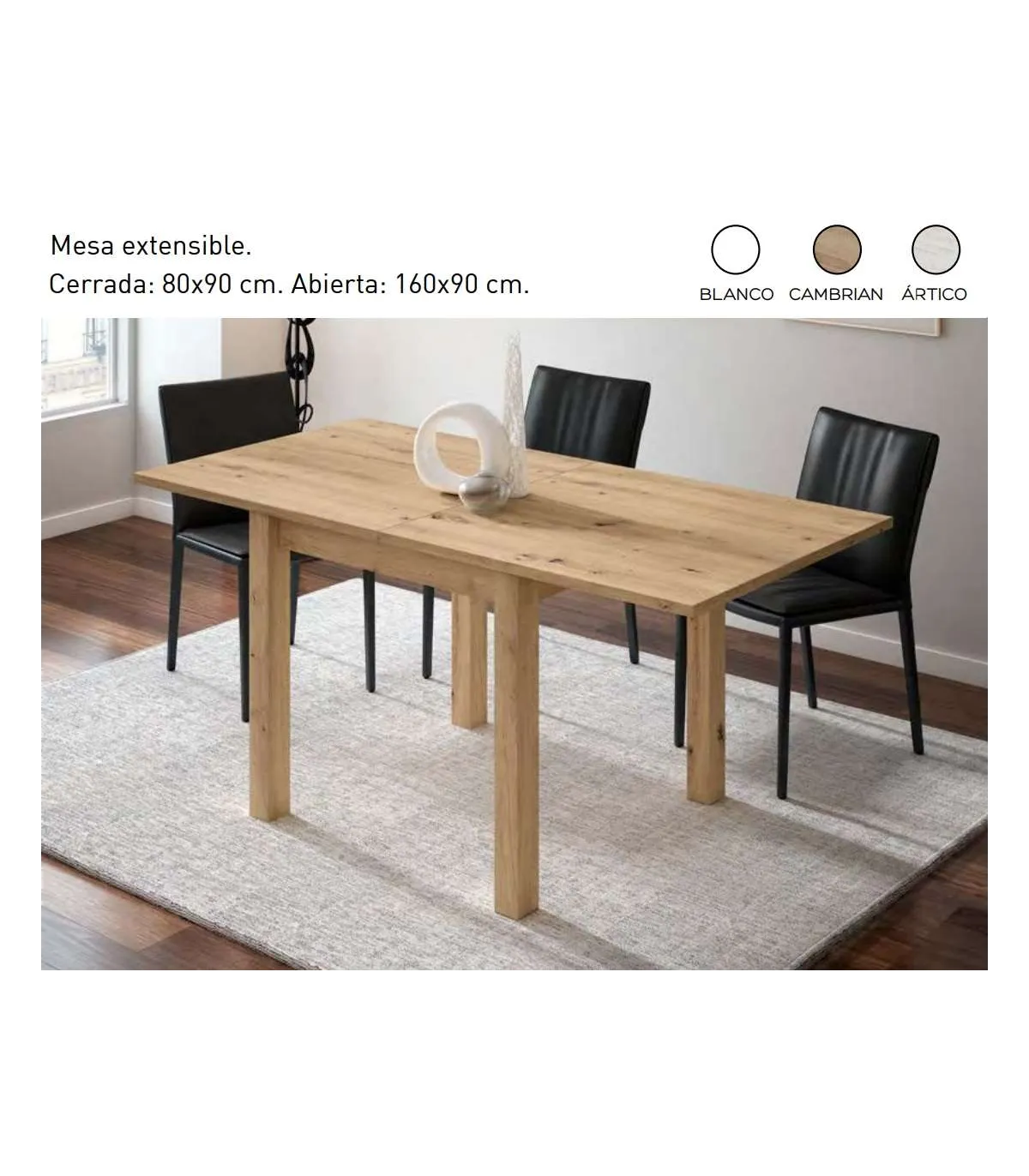 Elegante mesa de comedor fabricada en melamina de alta calidad y extensible de 80 a 160 cm, a elegir en blanco, cambrian y ártico.