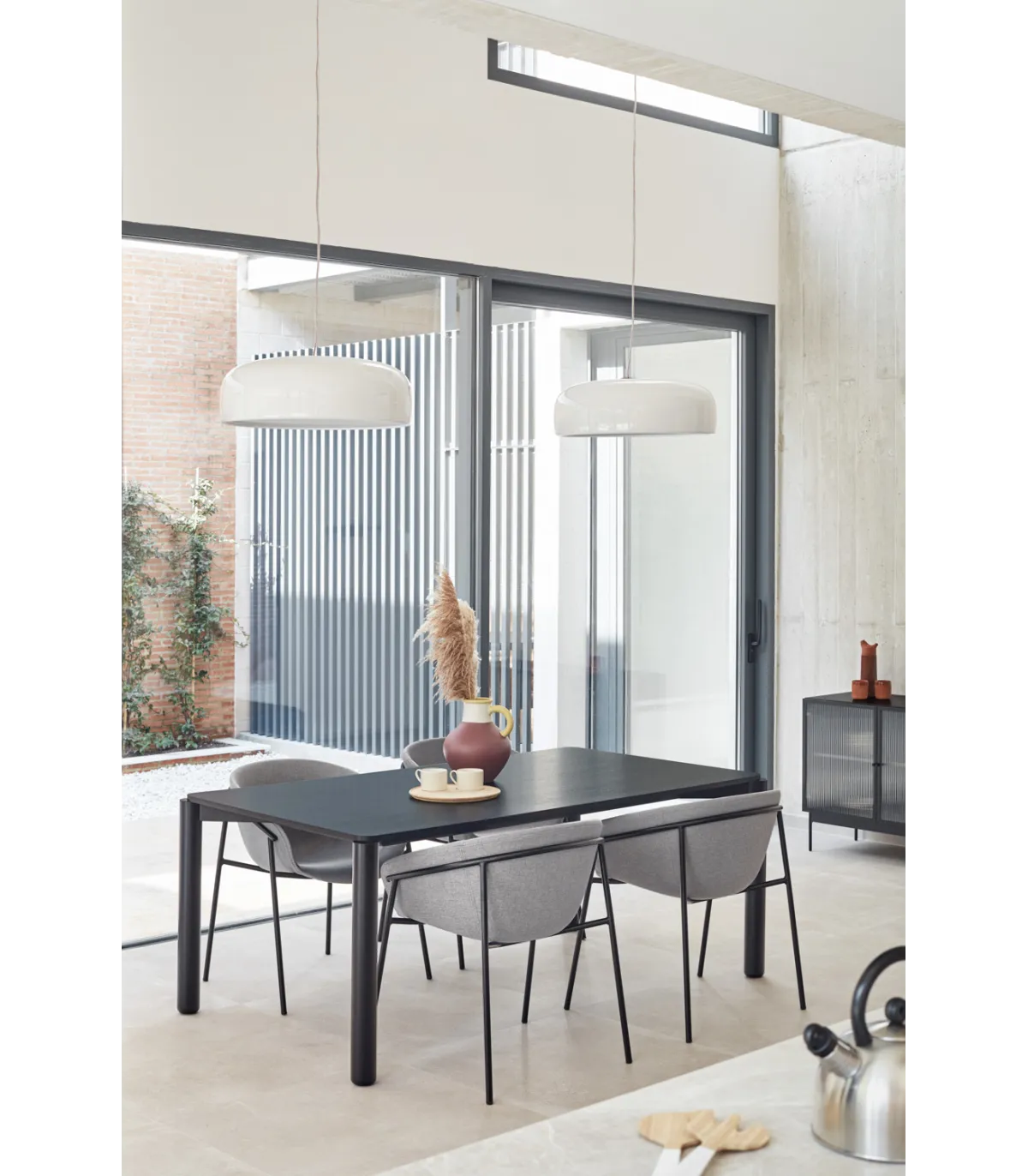 Disfruta de comidas en familia con la mesa extensible Atlas, elegante y funcional · Acabado negro · Medidas versátiles.