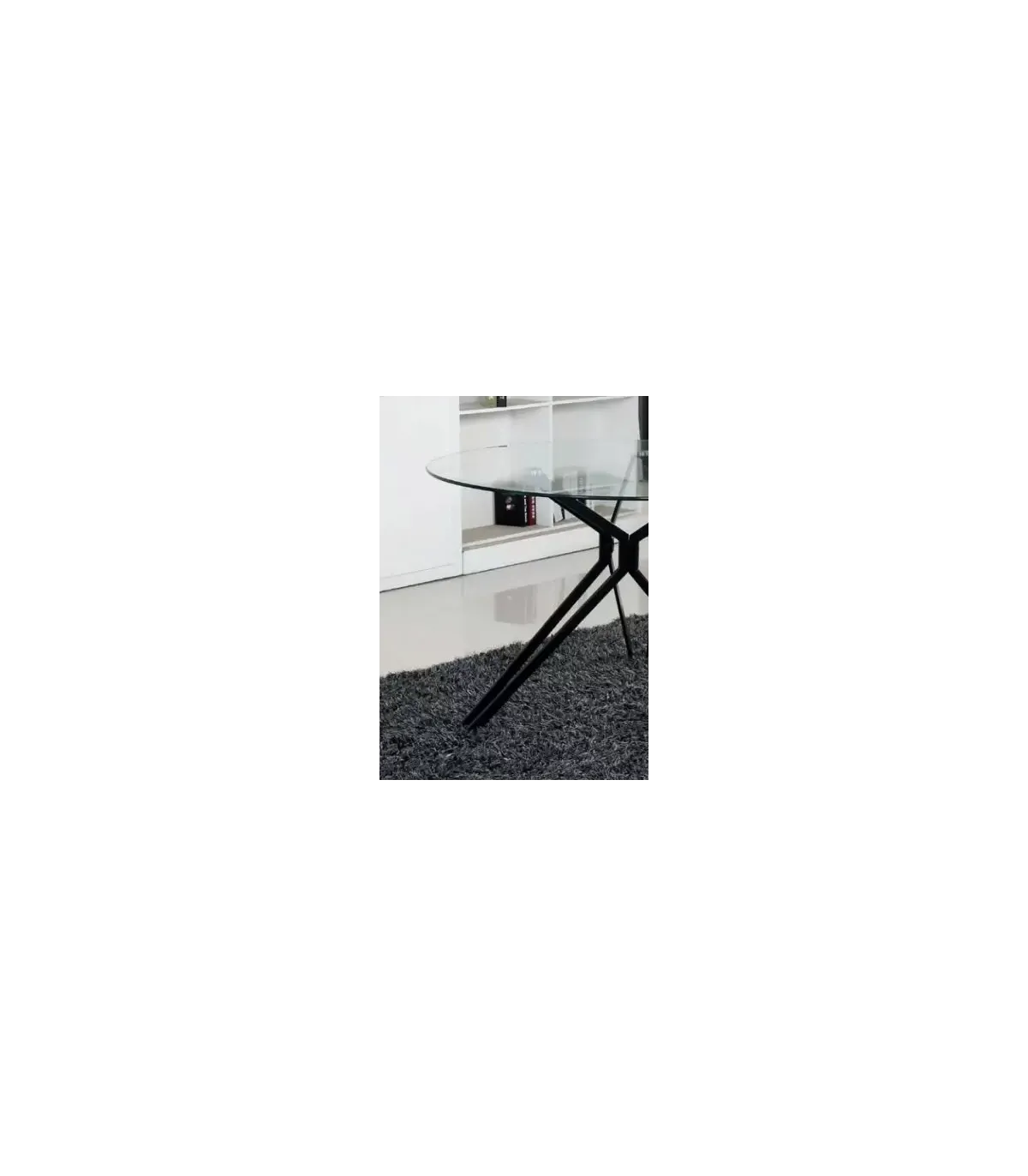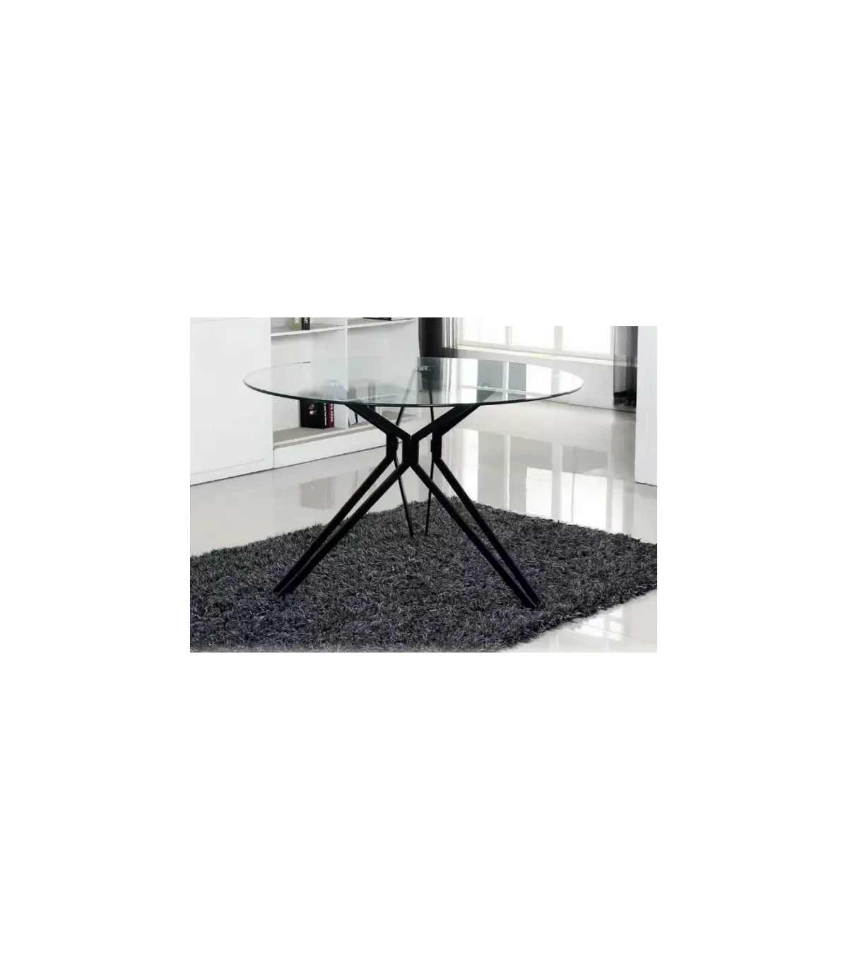 Mesa redonda River tapa cristal y patas negras. 75 cm(alto)110 cm(ancho)