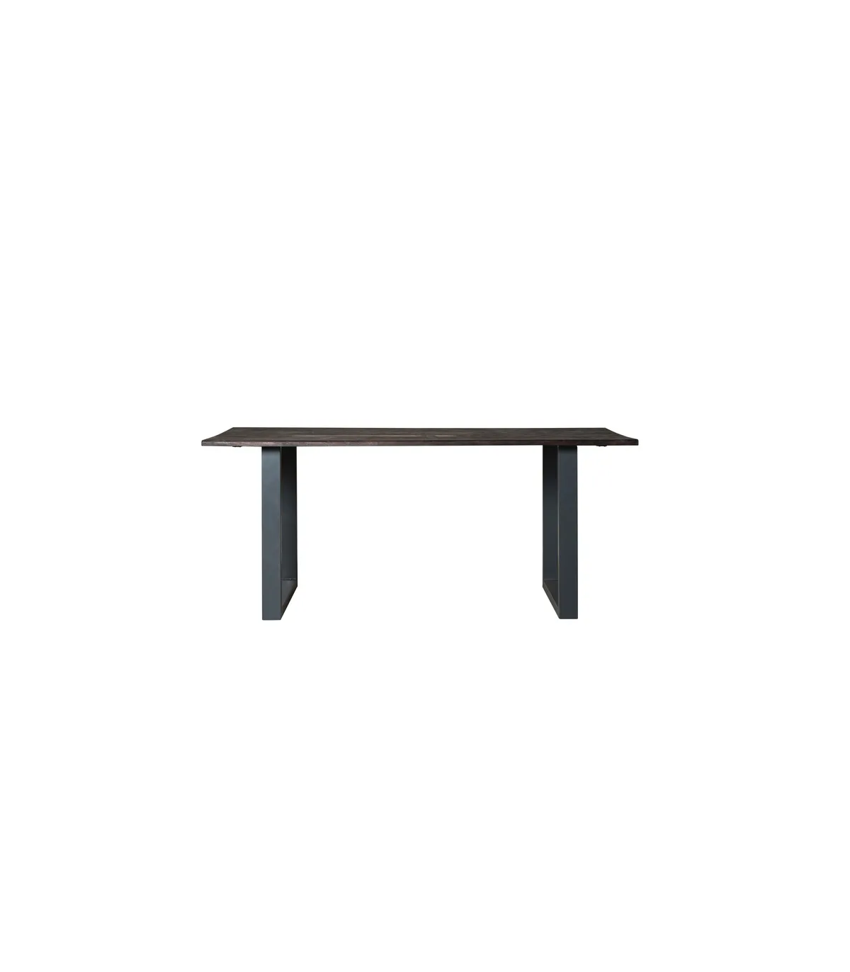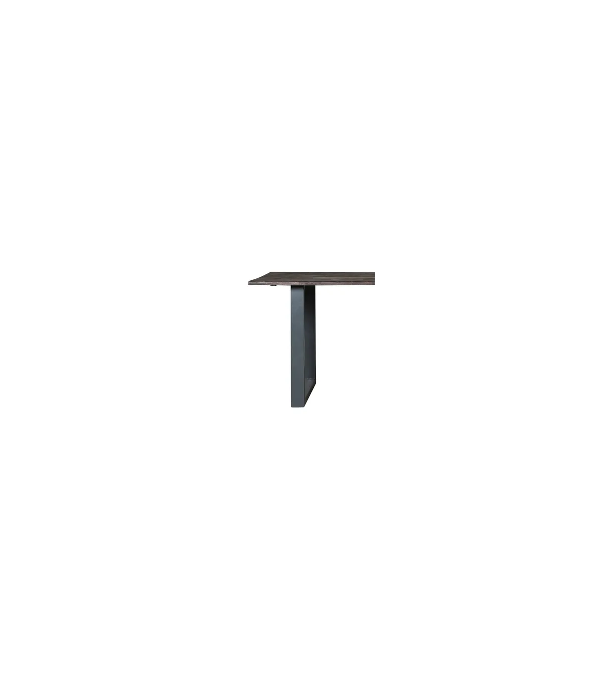 La superficie de la mesa de comedor extensible Md-Dimitri ha sido barnizada en acabado mate, lo que protege la madera y realza su belleza sin brillos excesivos. Las patas están fabricadas en acero y pintadas, brindando un soporte resistente y moderno al diseño.