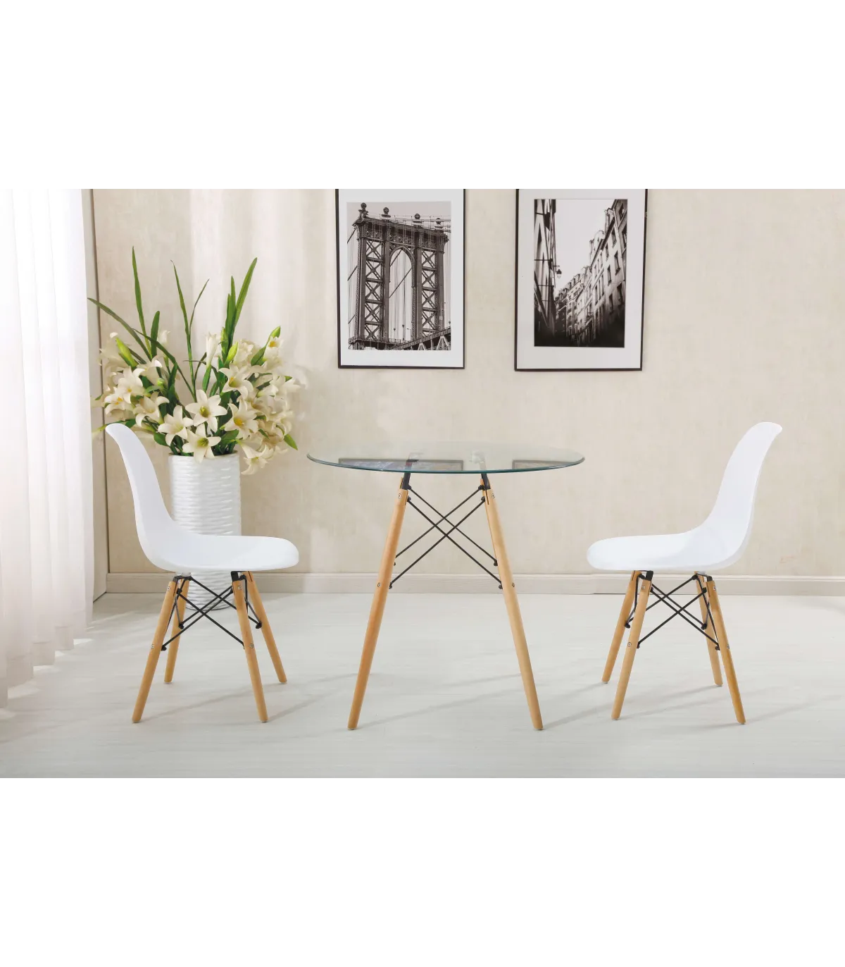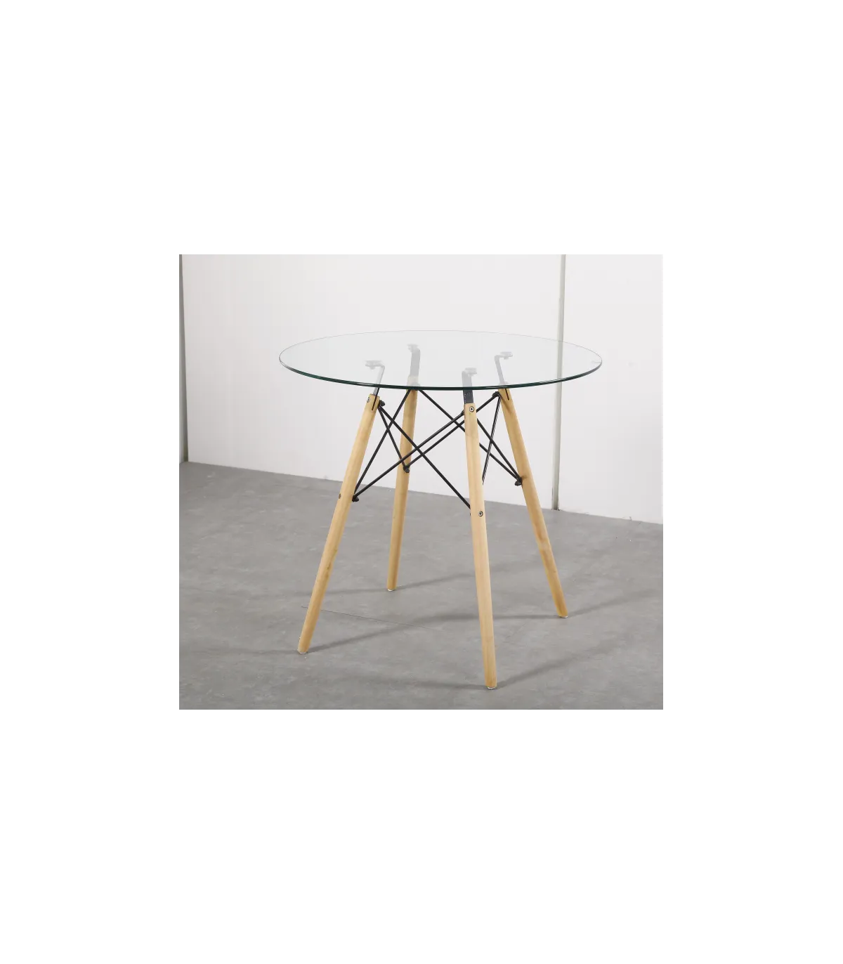La combinación de cristal templado y madera maciza de haya crea un contraste visual atractivo y armonioso, lo que hace que la Mesa Md-Velez sea una elección elegante y versátil para realzar el ambiente de tu hogar.
