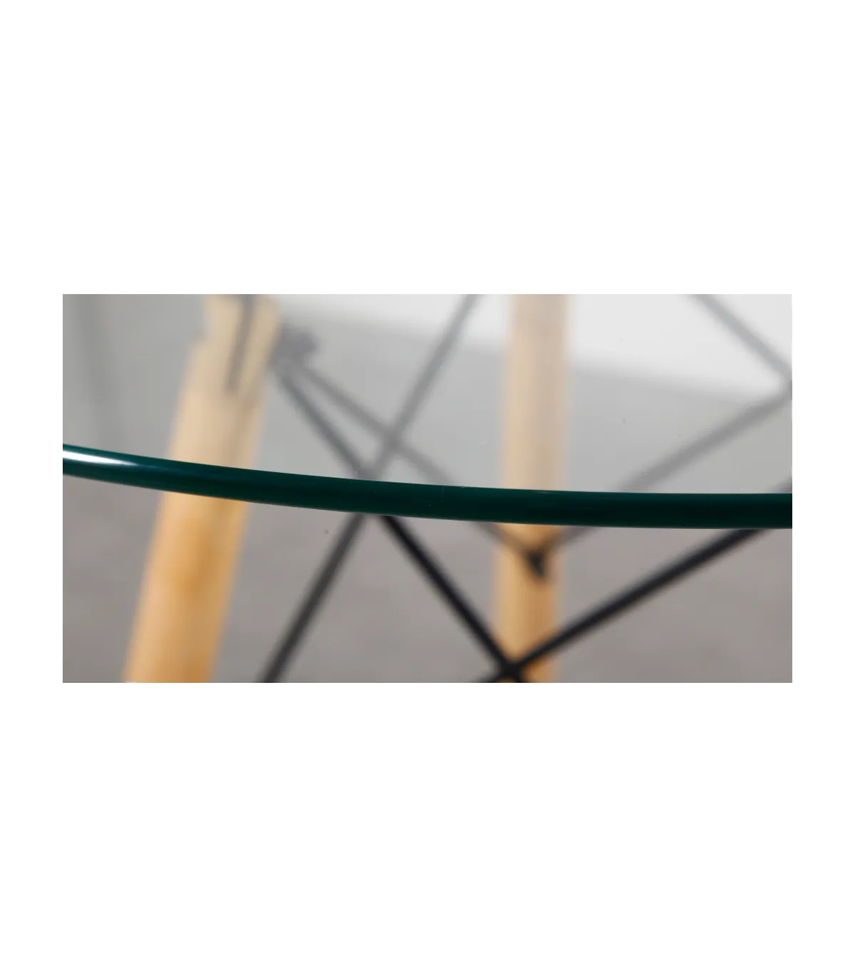 La tapa de la mesa está fabricada en cristal templado de 8mm de grosor, lo que le proporciona resistencia y durabilidad. El cristal templado es conocido por su alta resistencia a golpes y temperaturas, lo que la hace segura y confiable para el uso diario. La tapa de cristal permite apreciar la belleza natural de la madera de haya debajo, creando un aspecto moderno y sofisticado.