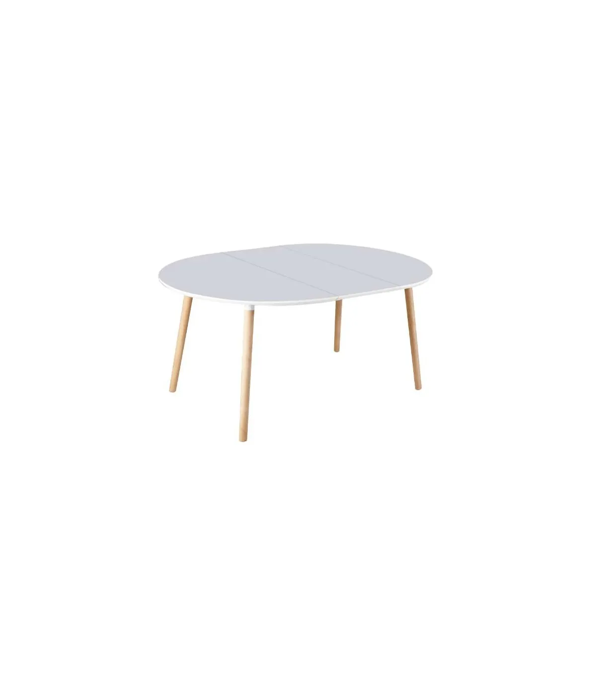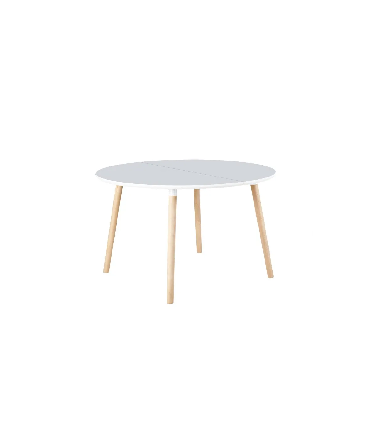 Disfruta de versatilidad y estilo con la mesa redonda extensible Md-Nordika-100 · acabado blanco/haya · 75 cm de alto.