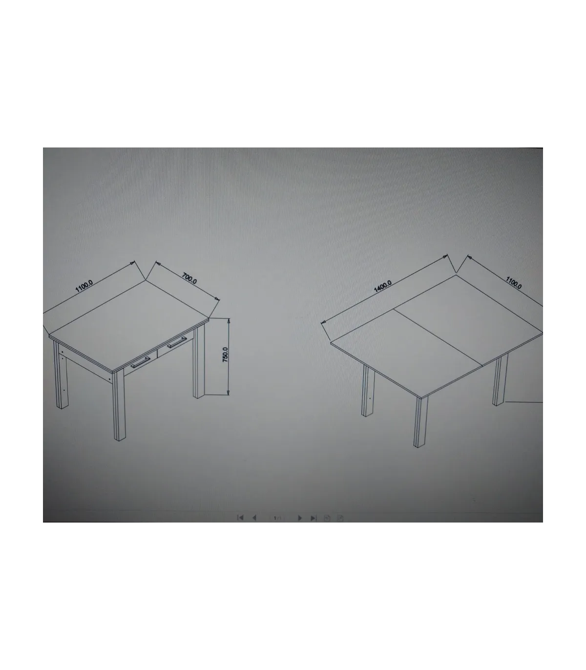 Medidas del producto (Ancho x Profundo x Alto): : 110/140 x 70 x 75 cm..