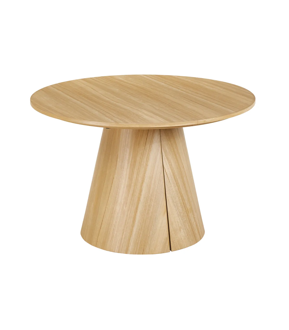 Disfruta de reuniones familiares con la mesa redonda extensible Md-Damiano · acabado oak · 75cm de alto · 120/160/200cm de ancho.