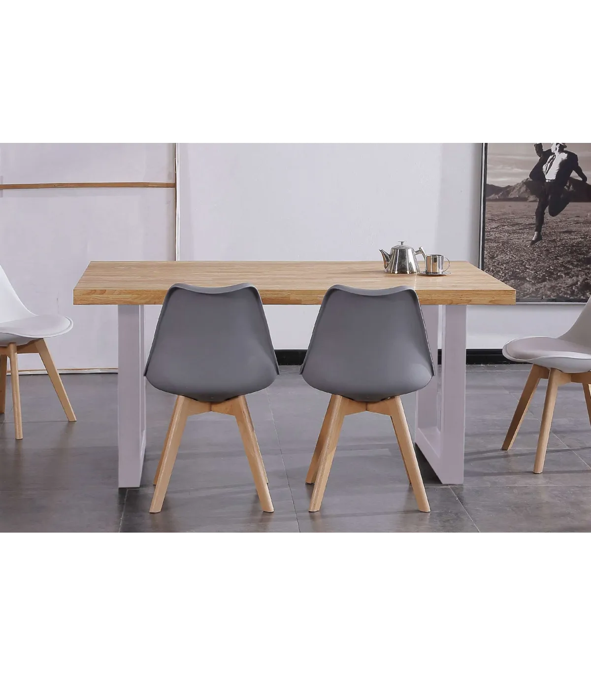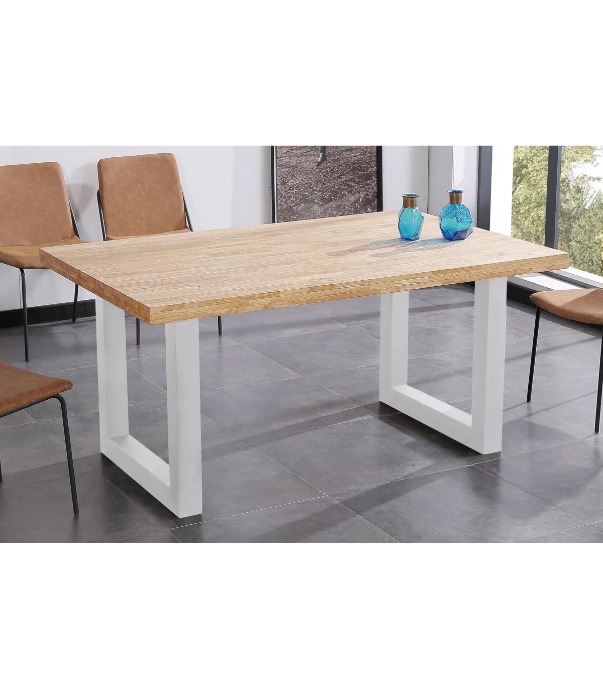 Las patas metálicas en color blanco aportan un toque de modernidad y sofisticación a la mesa. Estas patas no solo son elementos visuales impactantes, sino que también brindan la estabilidad y el soporte necesarios para crear un espacio de comedor seguro y funcional. El contraste entre la madera y el metal crea una estética única que es característica del estilo industrial.