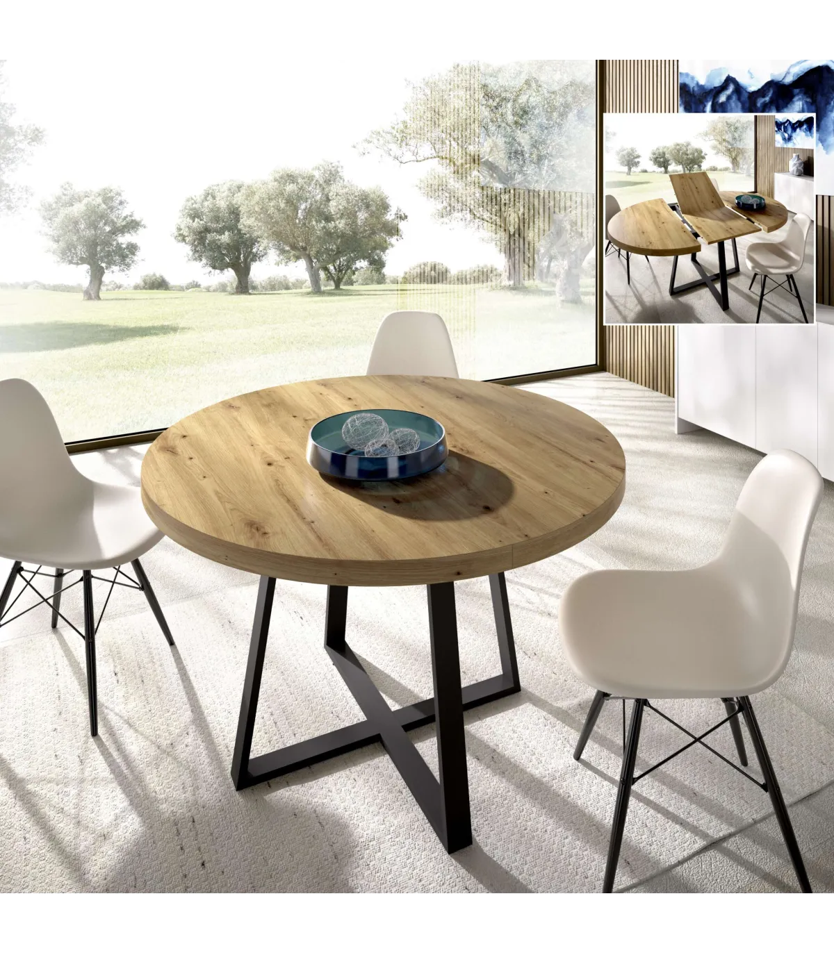 Características del Mesa Comedor Extensible 110 Redonda Patas Métalicas Nordic: